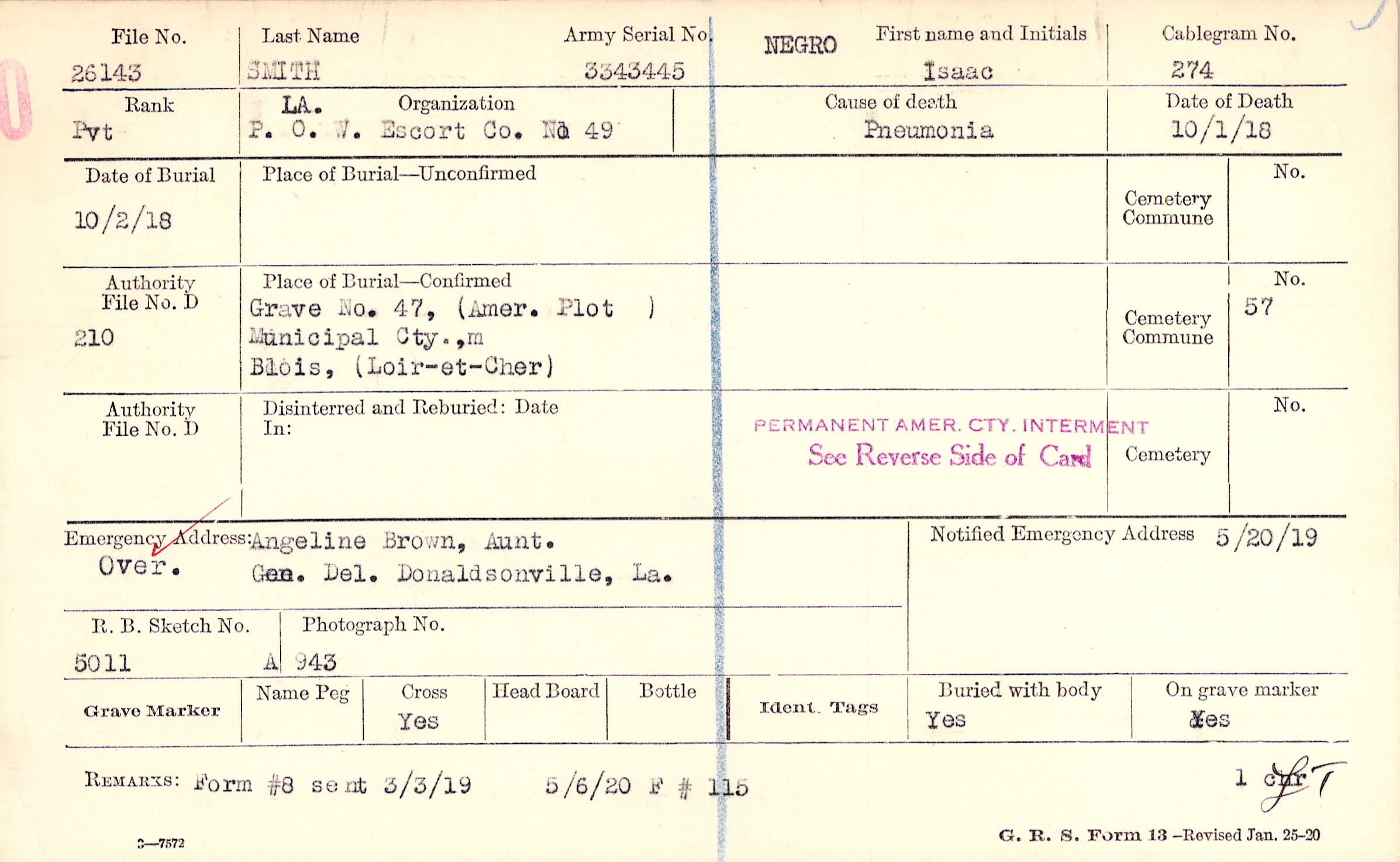 Grave 47, (Amer. Plot) Municipal Cty, m, Blois, (Loir-et-Cher)