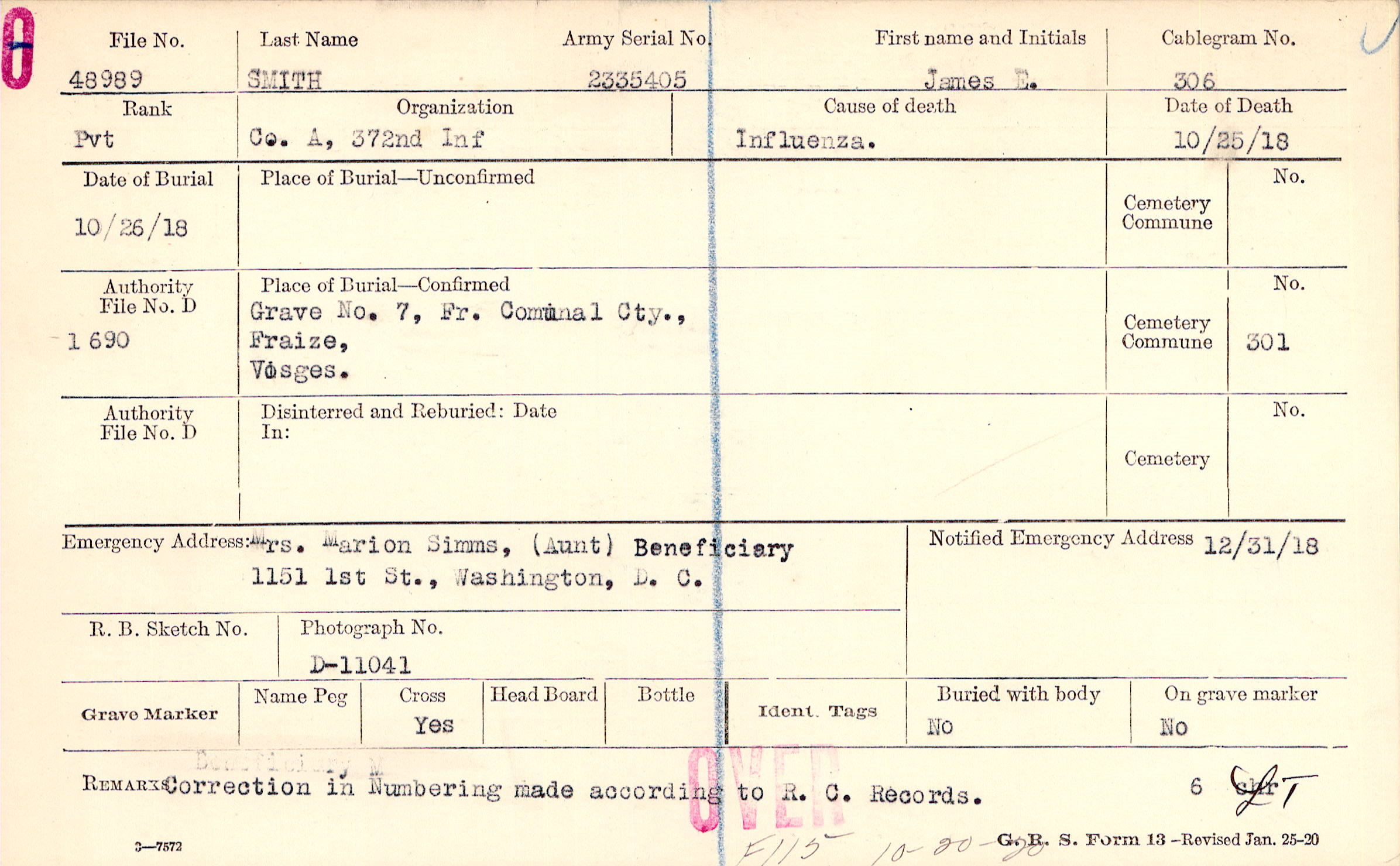 Mrs. Marion Simms, (Aunt), 1151 1st St., Washington, D. C., Beneficiary