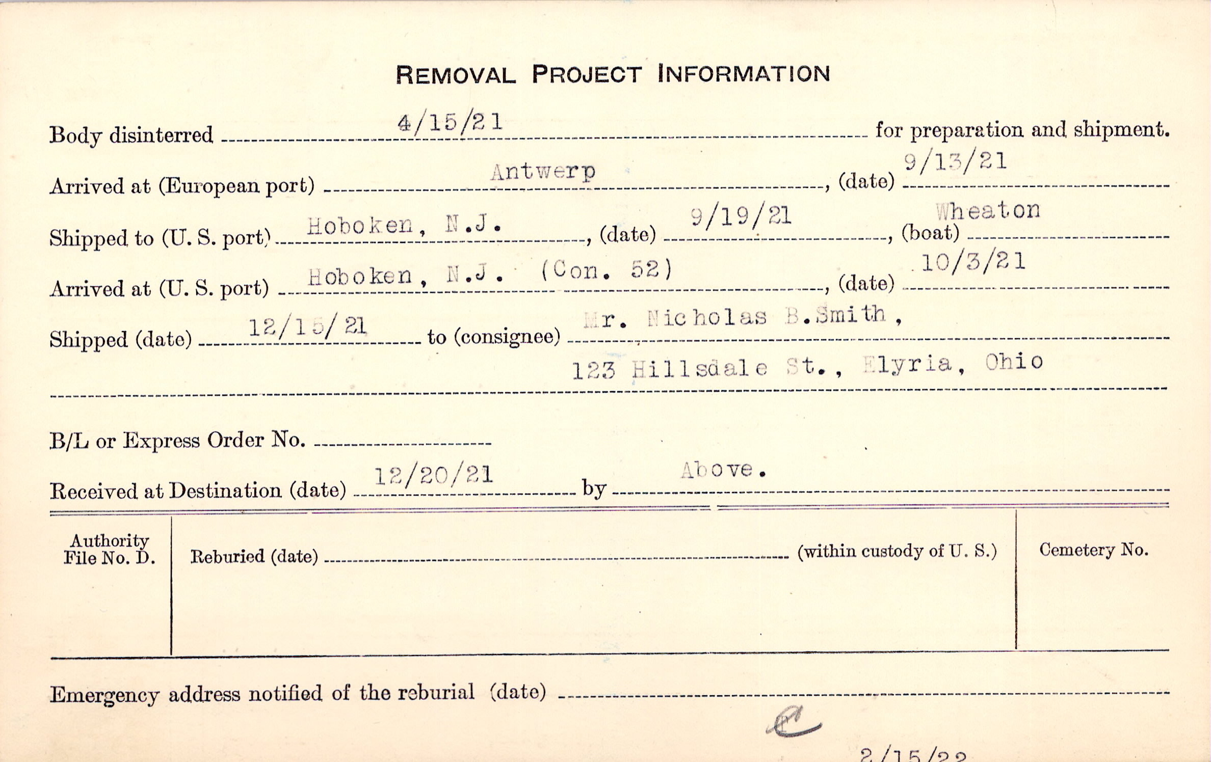 to Mr. Nicholas B. Smith, 123 Hillsdale St., Elyria, Ohio