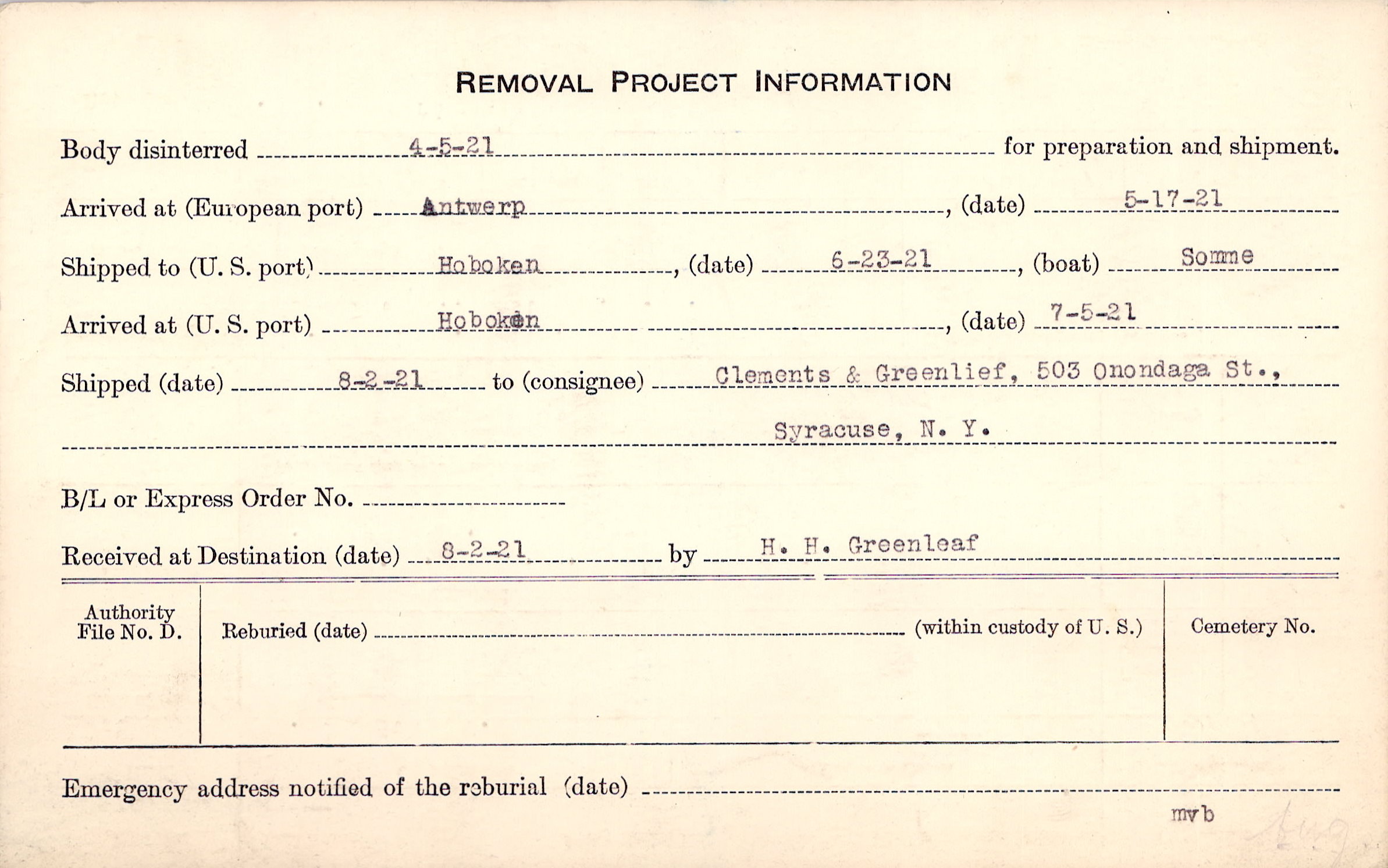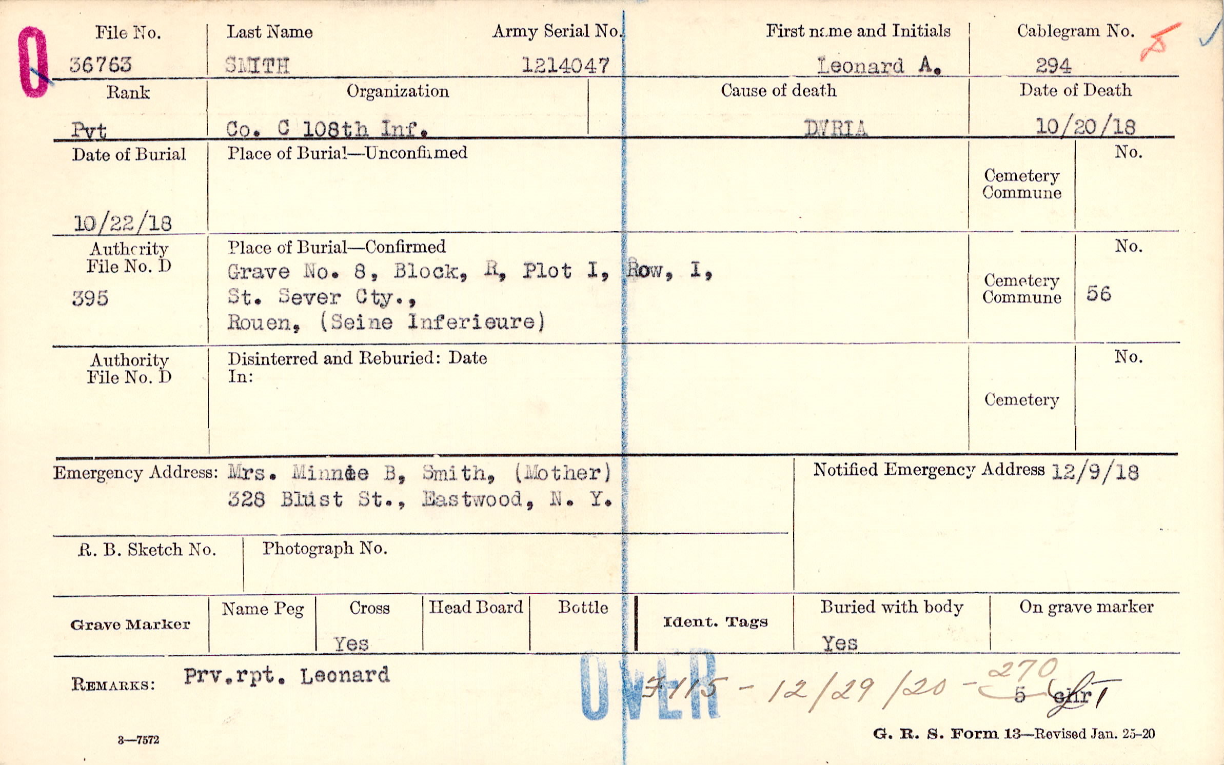 Grave 8, Block, R, Plot I, Row, I, St. Sever Cty., Rouen, (Seine Inferieure)