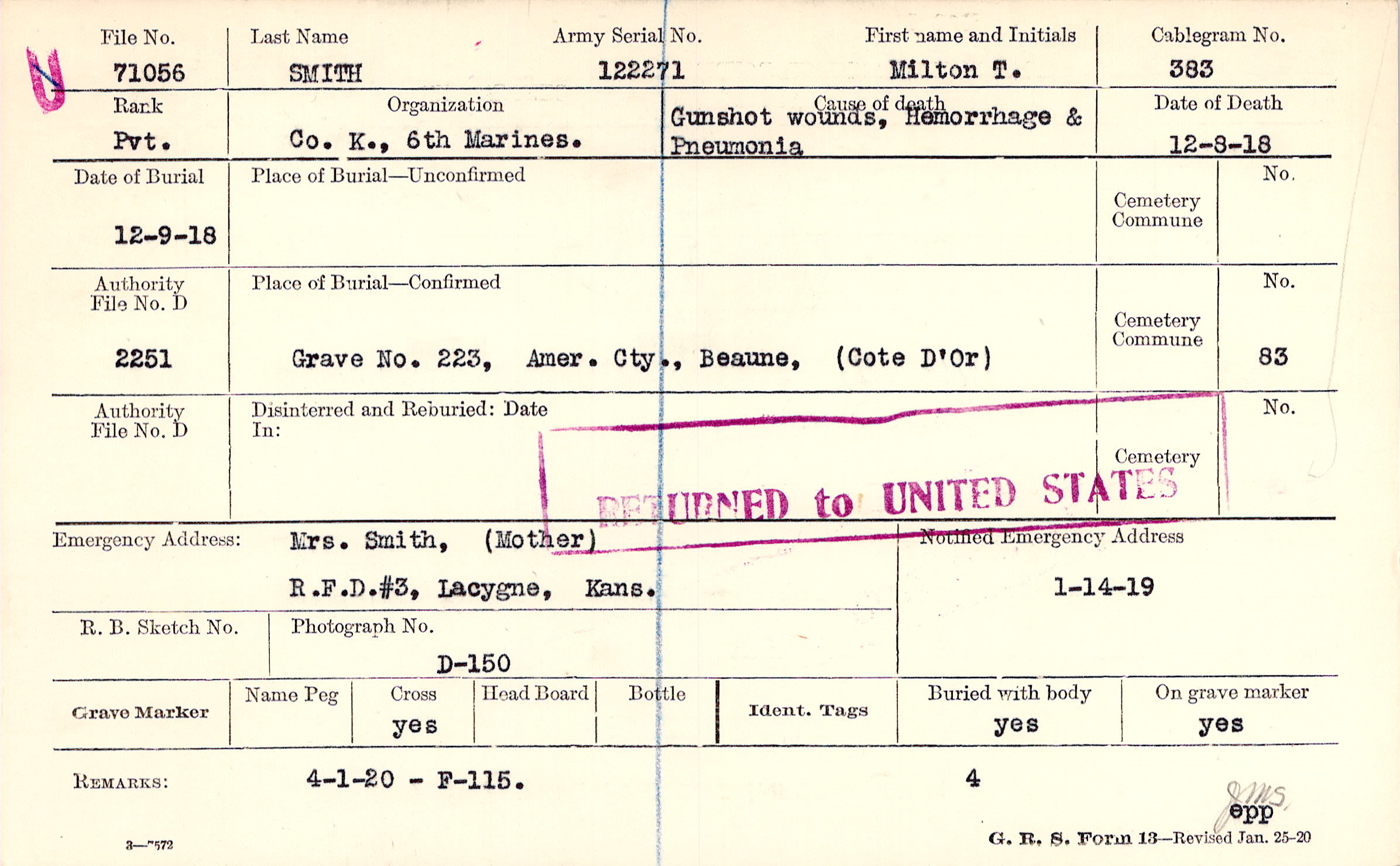 Place of Burial—Confirmed |