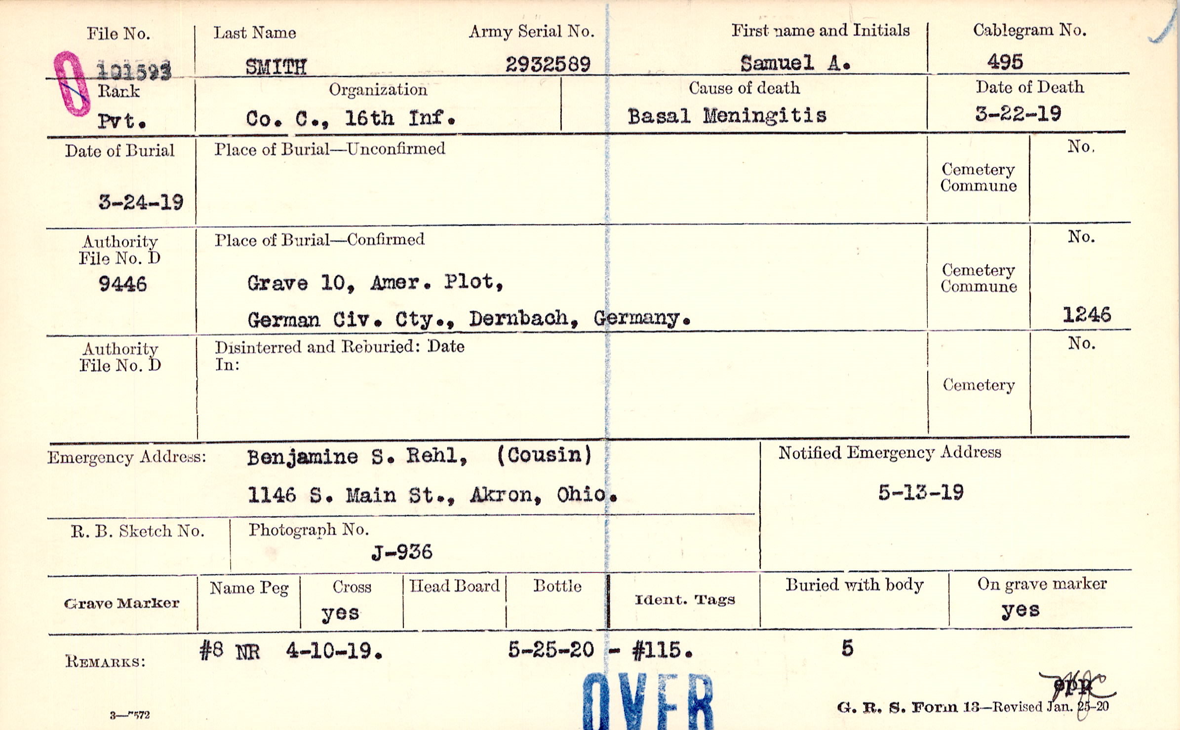 Grave 10, Amer. Plot, German Civ. Cty., Dernbach, Germany.