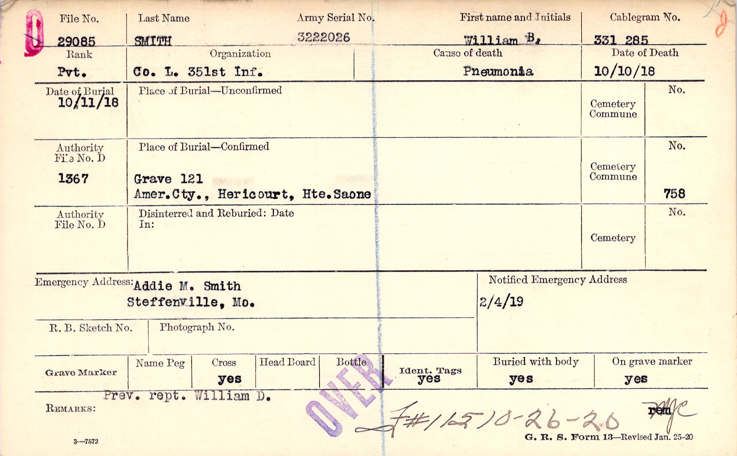 Grave 121, Amer. Cty., Hericourt, Hte. Saone