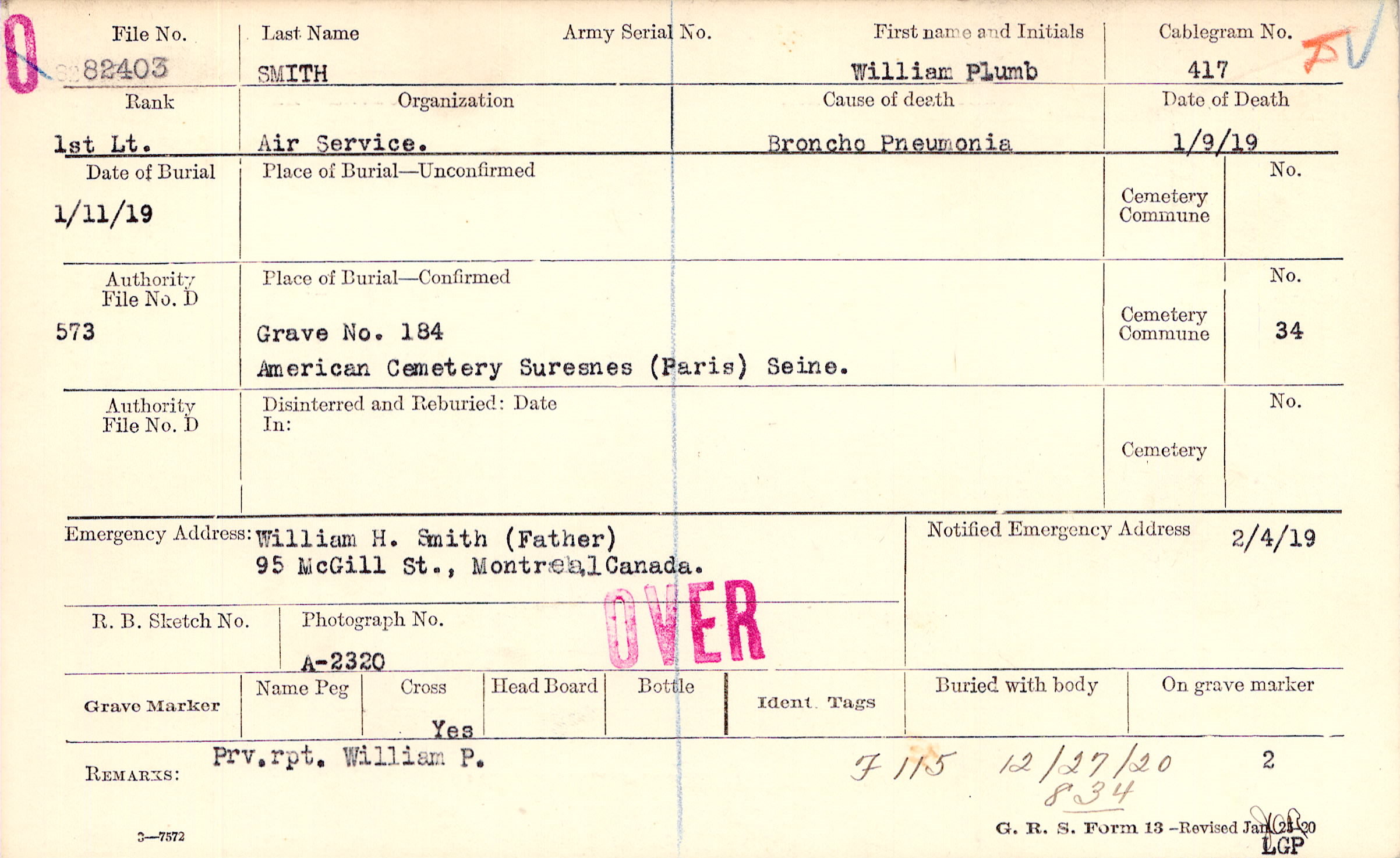 William H. Smith (Father), 95 McGill St., Montreal Canada.