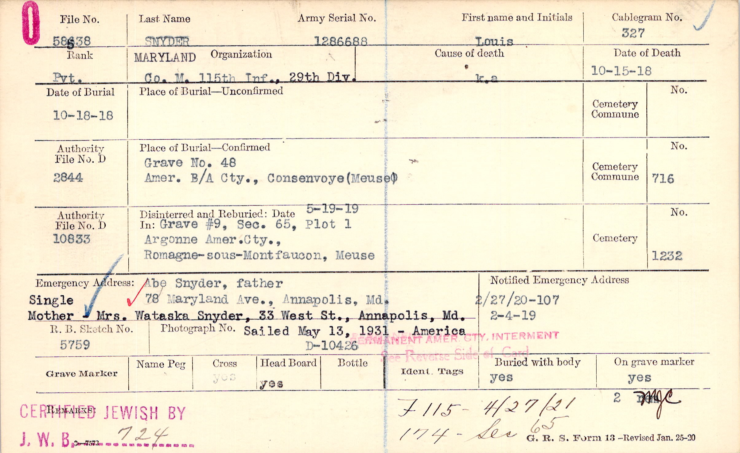 Grave 48, Amer. B/A Cty., Consenvoye, Meuse