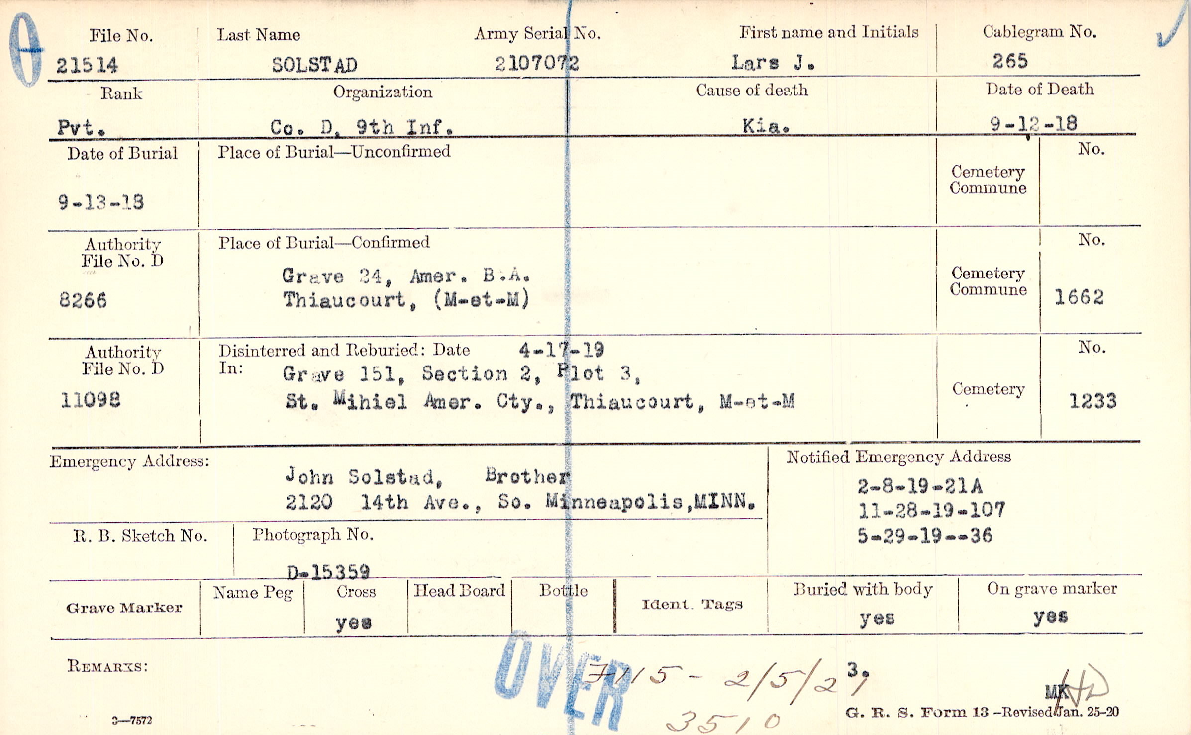 John Solstad, Brother, 2120 14th Ave., So. Minneapolis, MINN>