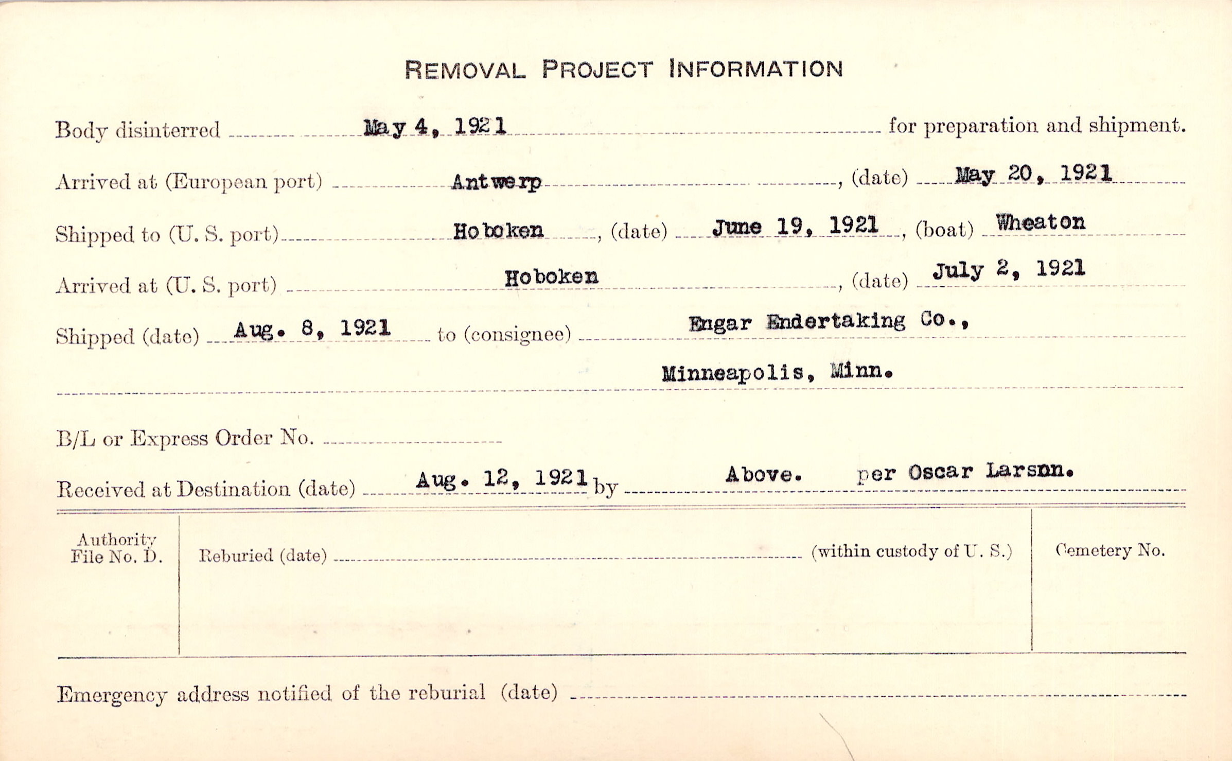 to Engar Endertaking Co. , Minneapolis, Minn.