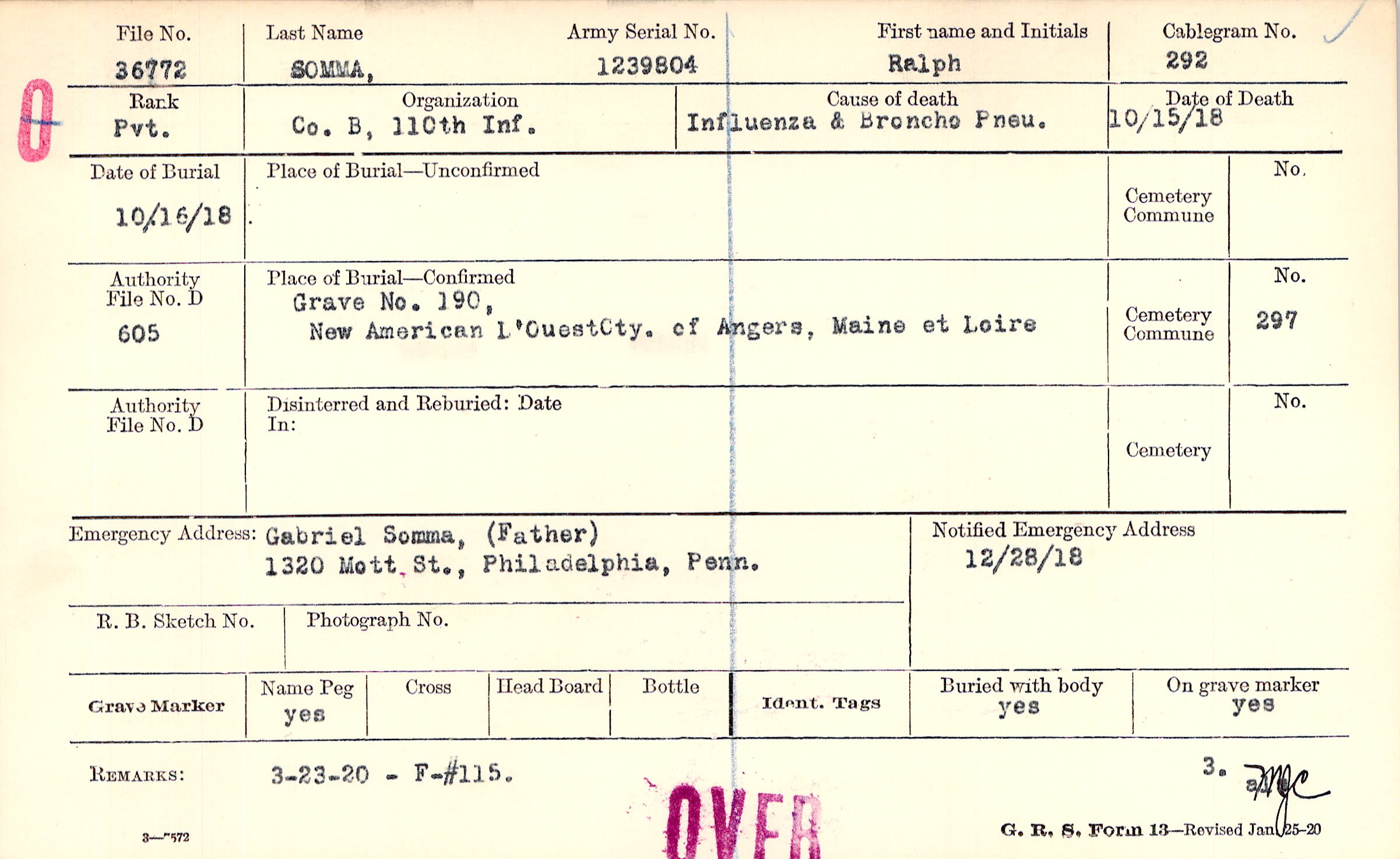 Gabriel Somma, (Father), 1320 Mott St., Philadelphia, Penn.