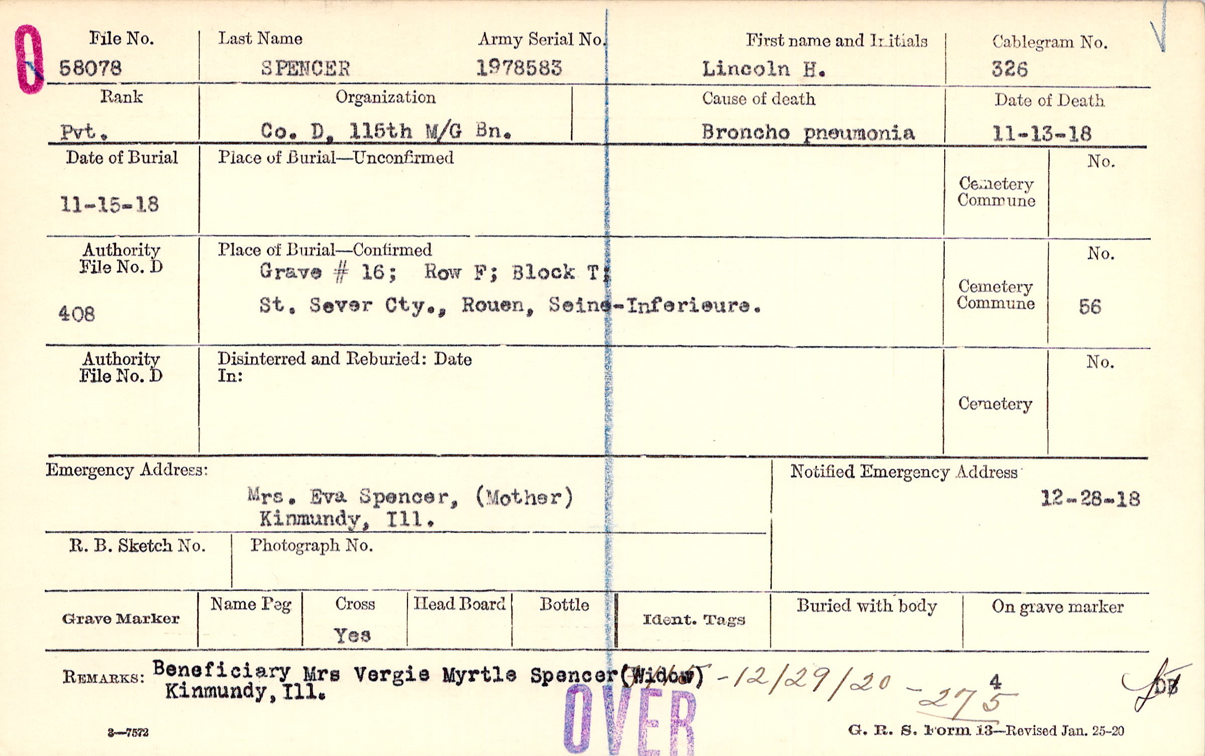 Mrs. Eva Spencer, (Mother), Kinmundy, Ill.