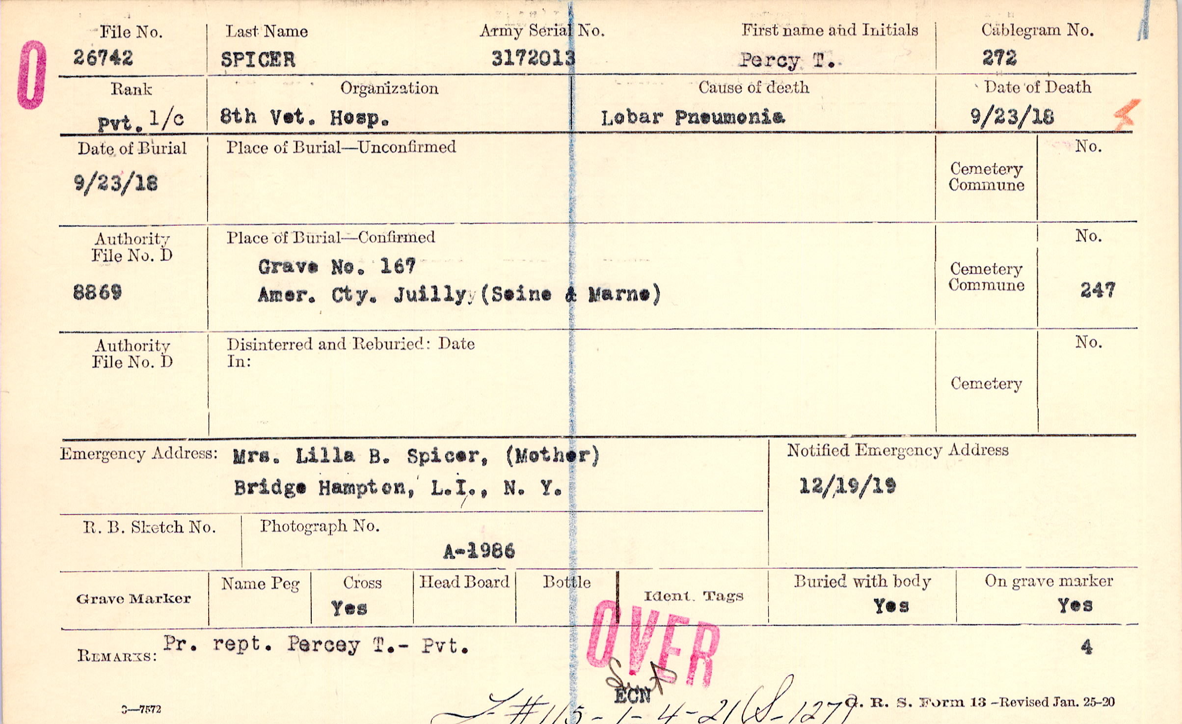 Grave 167, Amer. Cty., Juilly, Seine & Marne