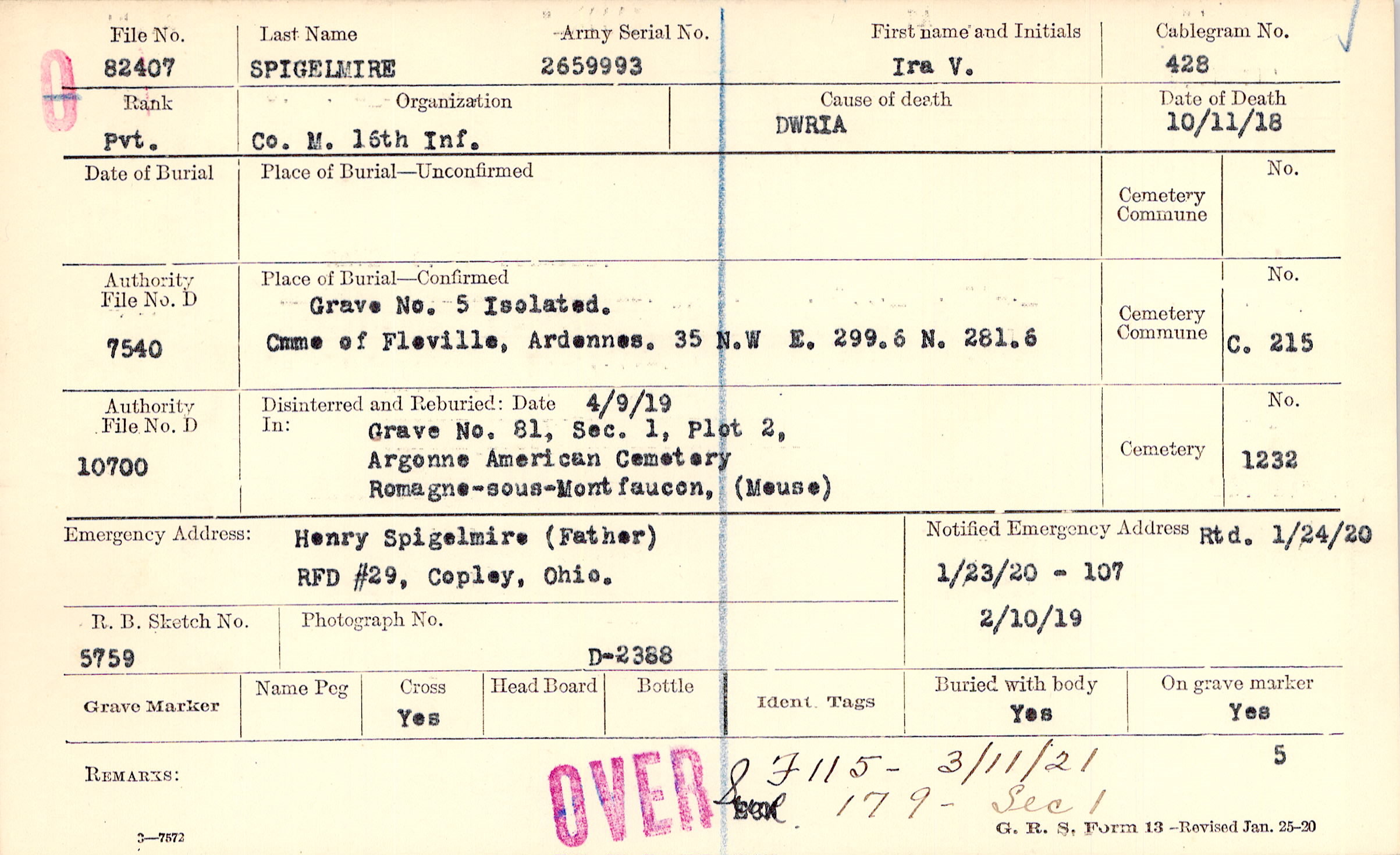 Form 107: 1/23/1920, 2/10/1919, Rtd 1/24/1920