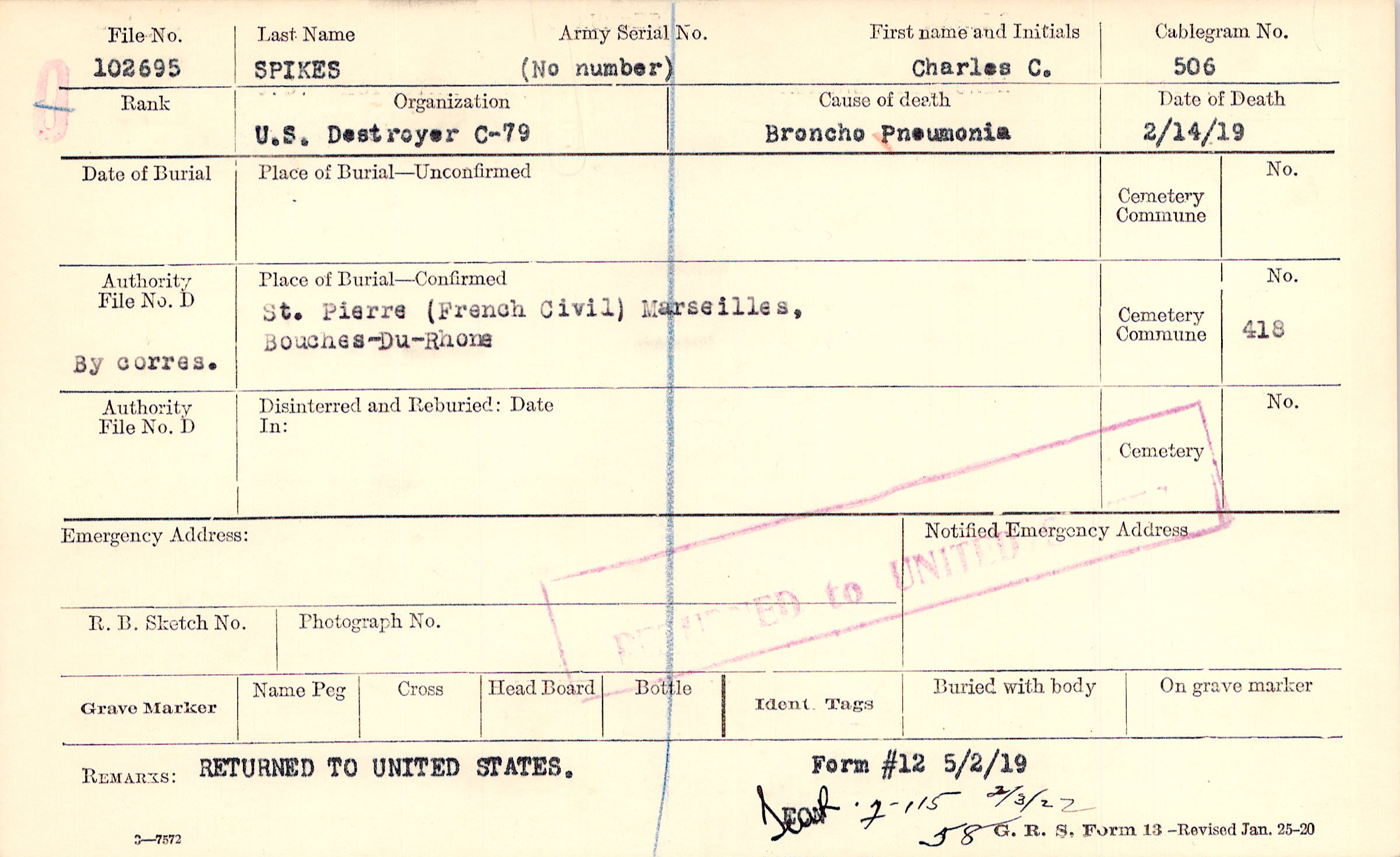 RETURNED TO UNITED STATES, Form #12 5/2/19, F-115 2/3/22 58
