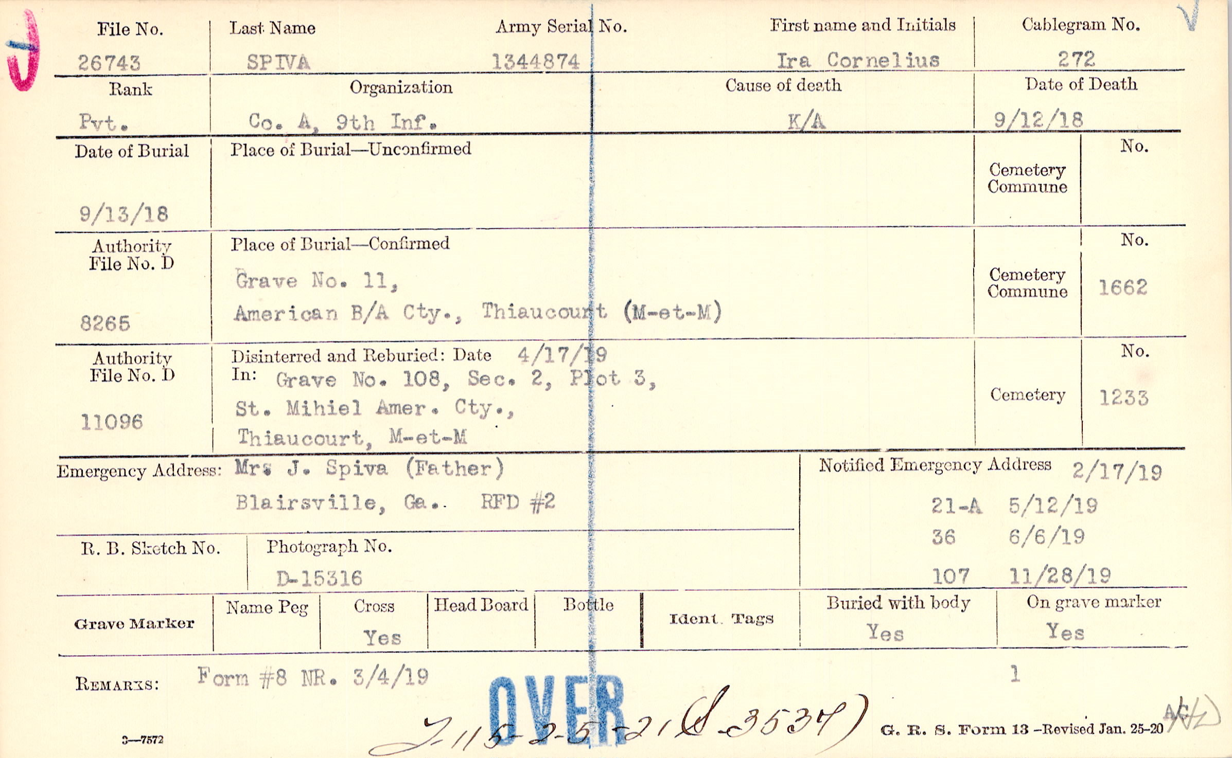 2/17/1919, Form 21A: 5/12/1919, Form 36: 6/6/1919, Form 107: 11/28/1919