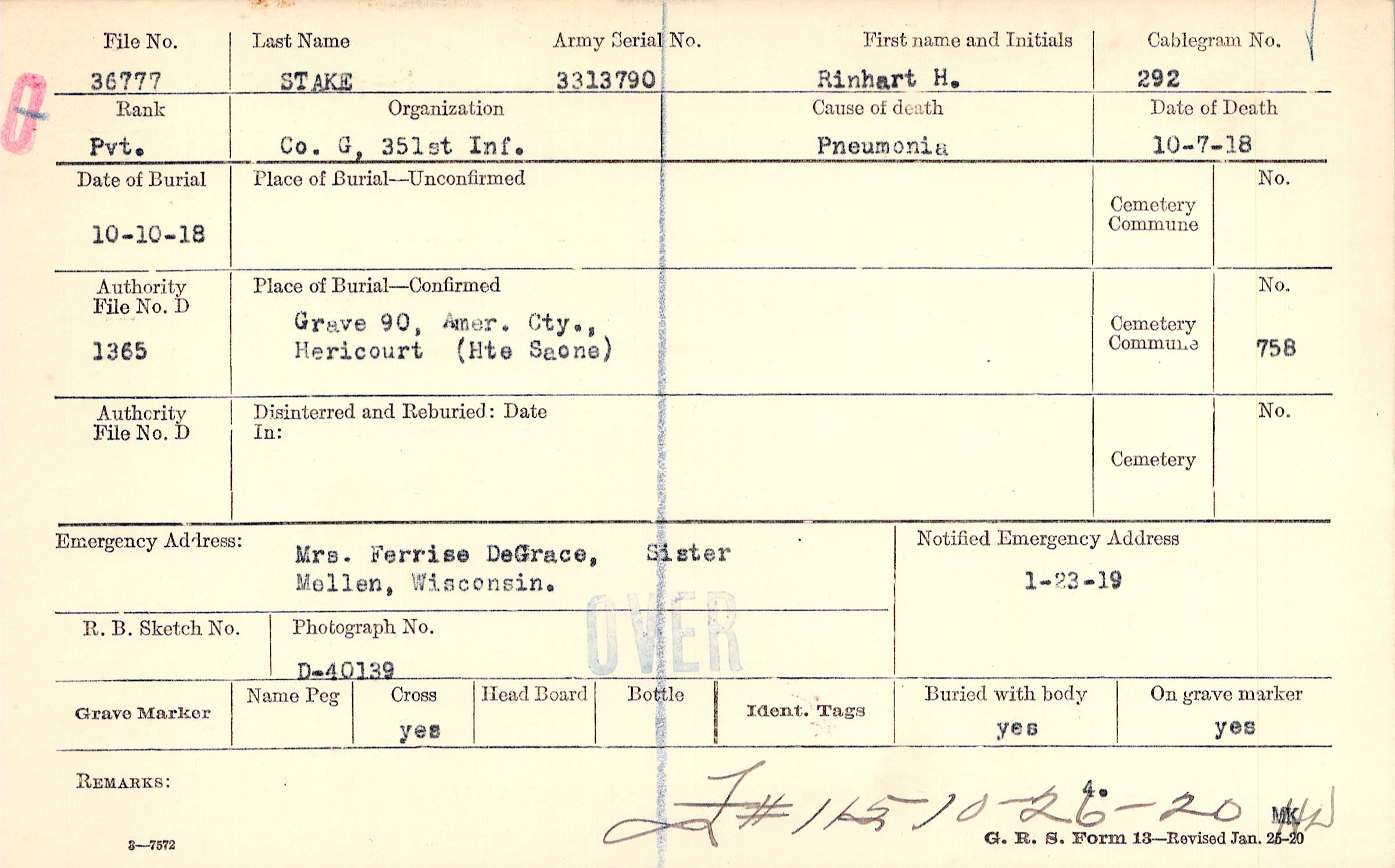 Grave 90, Amer. Cty., Hericourt, Hte Saone.