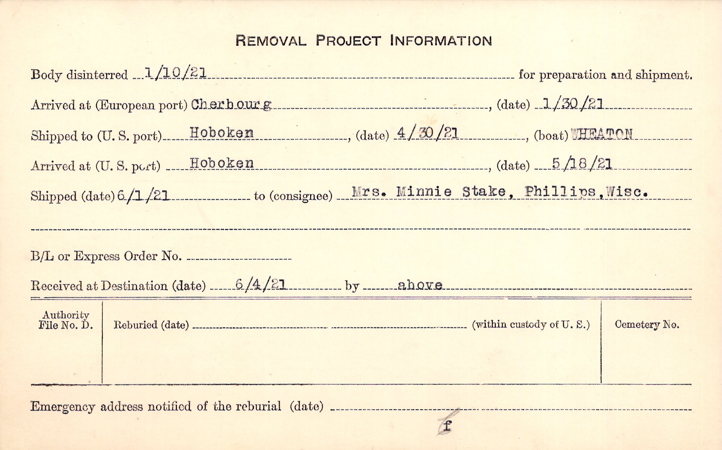 to Mrs. Minnie Stake, Phillips, Wisc.