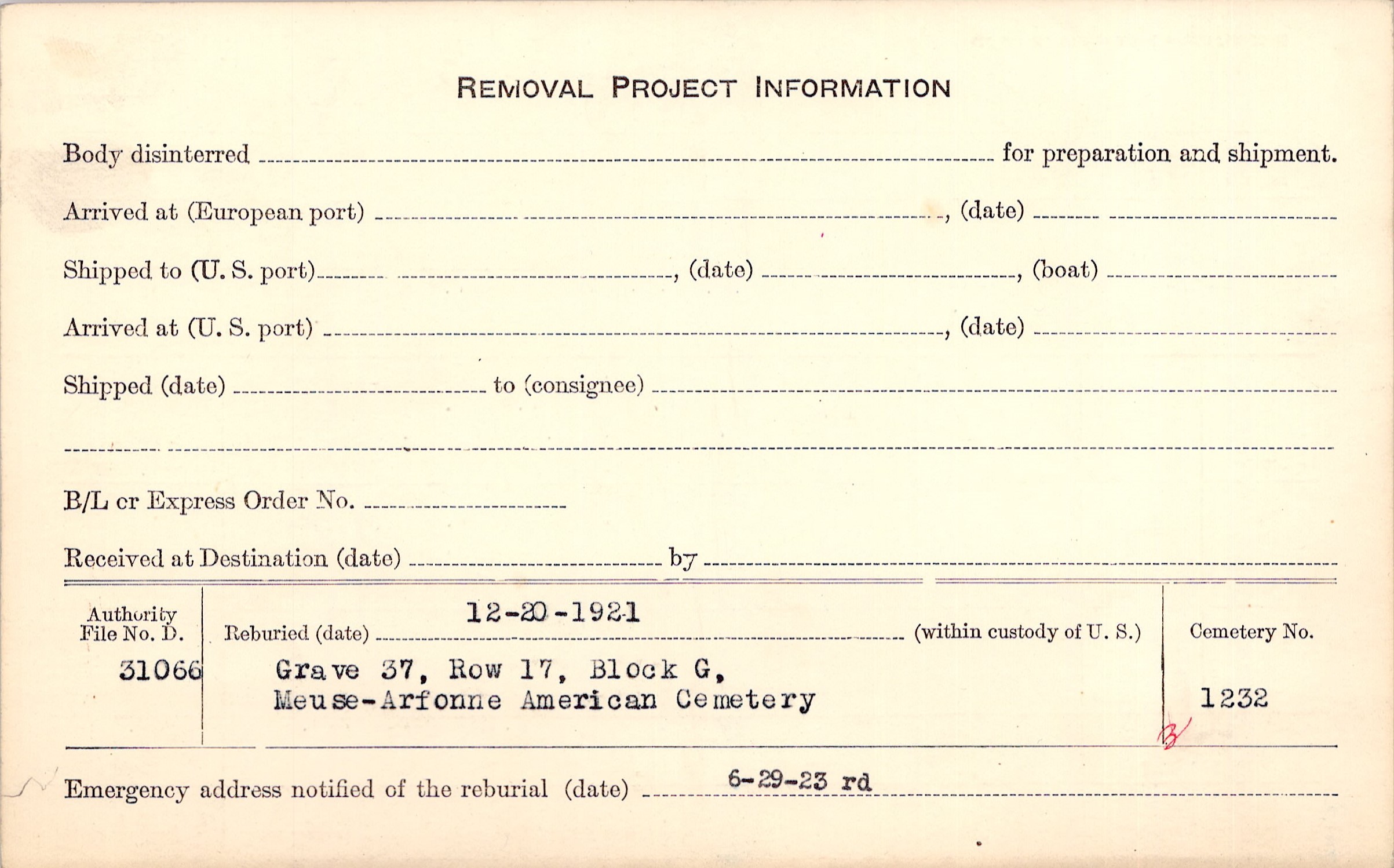 | Permanent Burial in Foreign Cemetery |