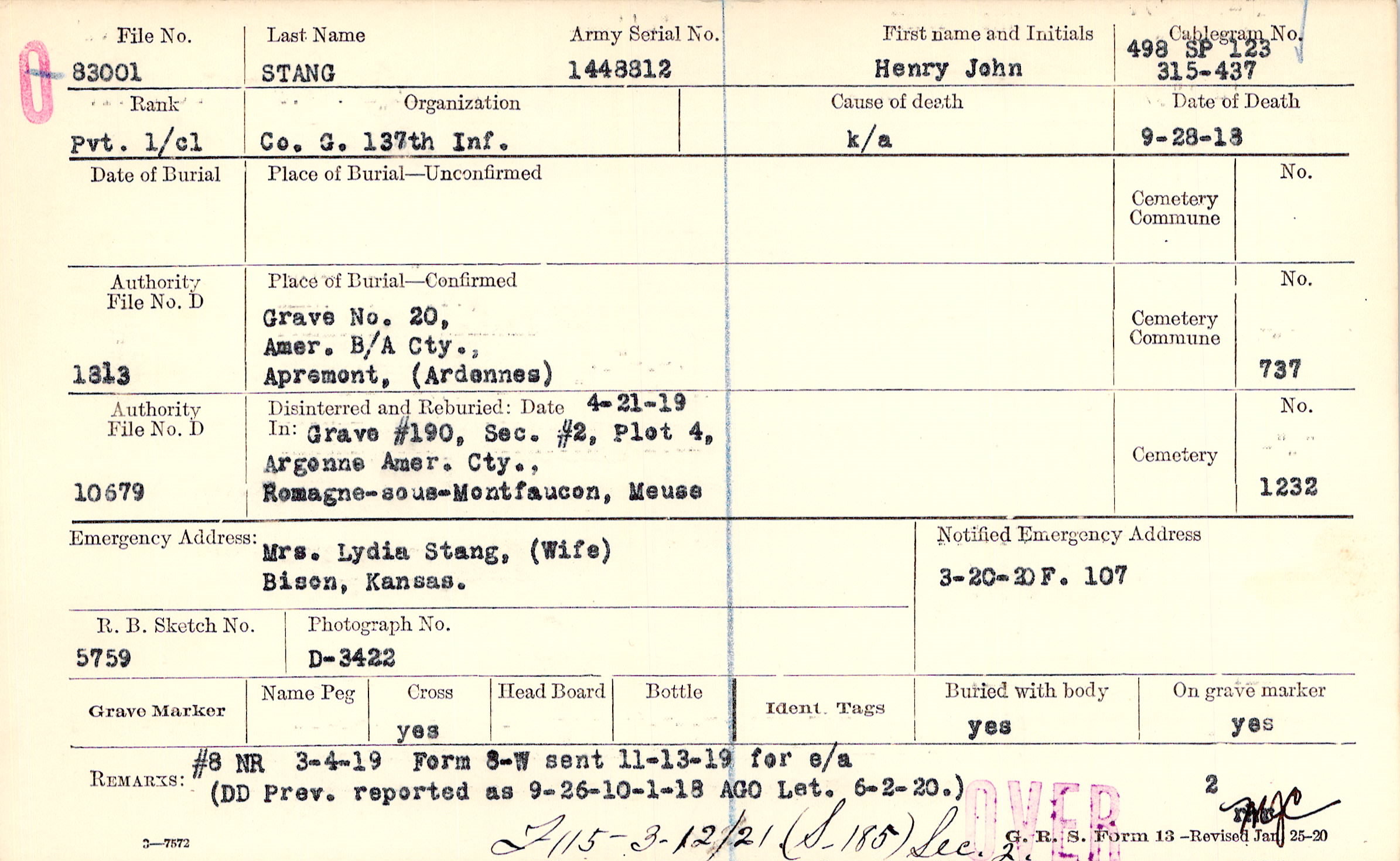 Grave 20, Amer. B/A Cty., Apremont, Ardennes