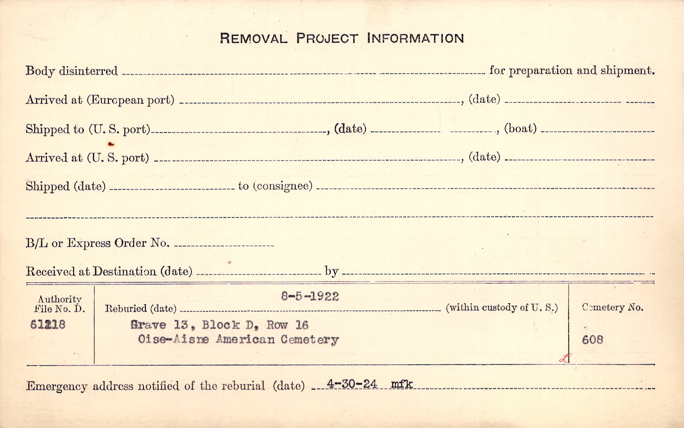 | Permanent Burial in Foreign Cemetery |