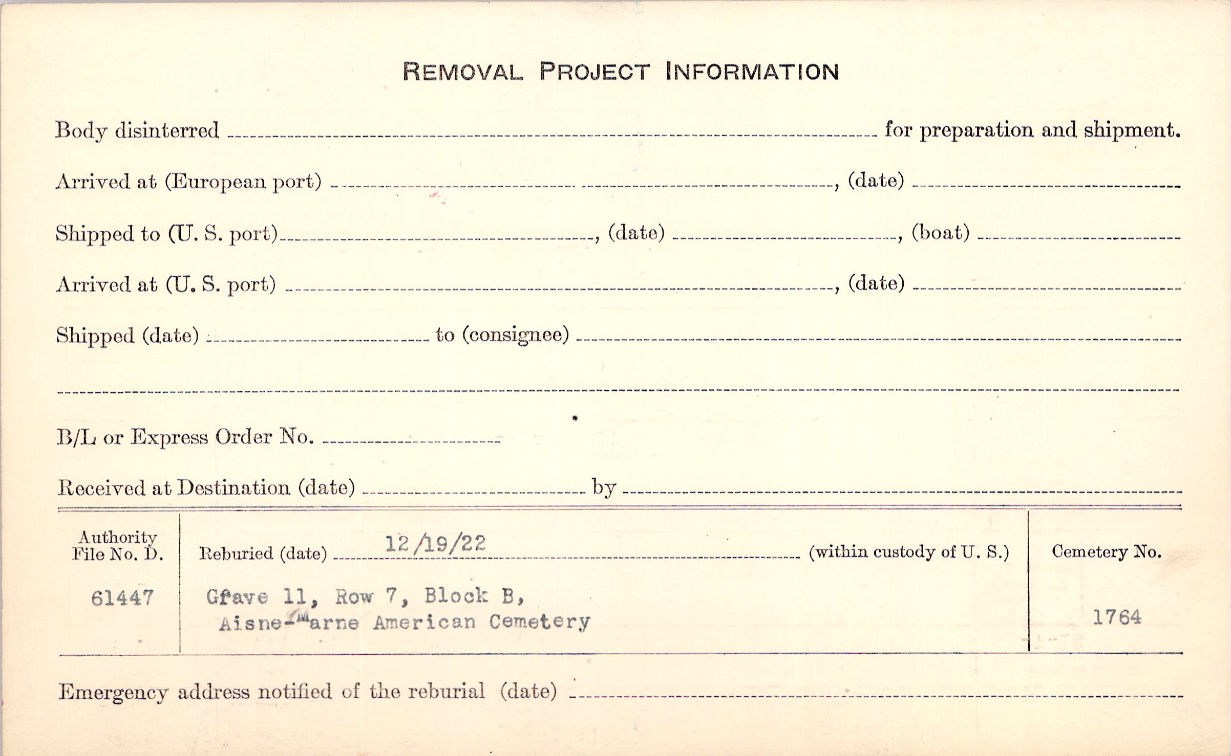 | Permanent Burial in Foreign Cemetery |