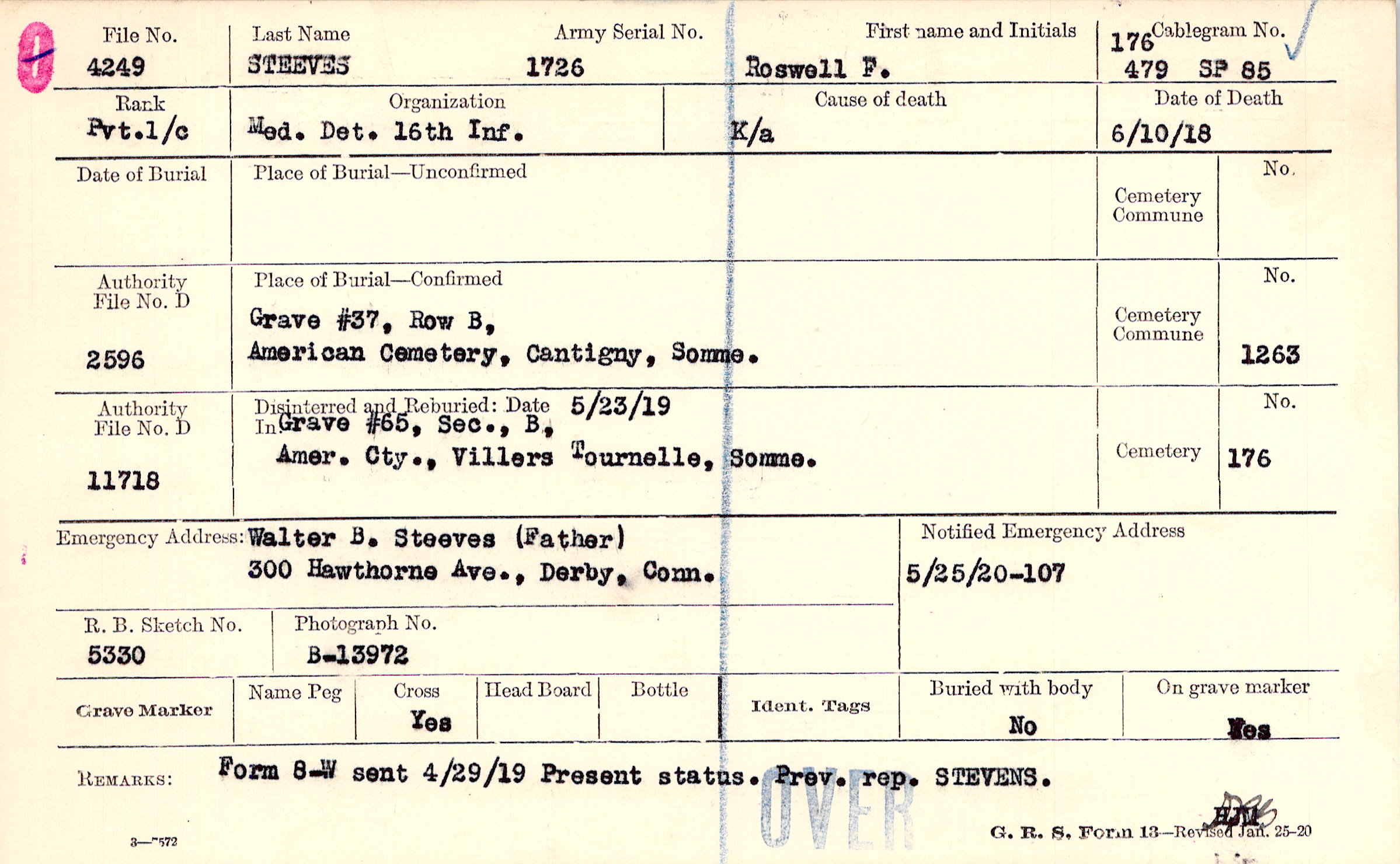 Walter B. Steeves (Father), 300 Hawthorne Ave., Derby, Conn.