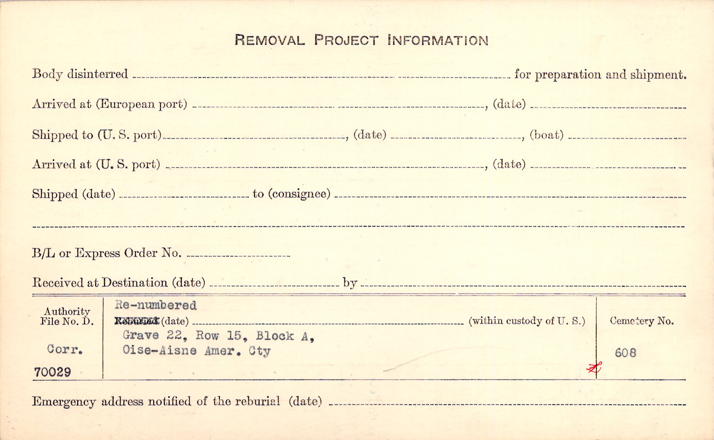 | Permanent Burial in Foreign Cemetery |