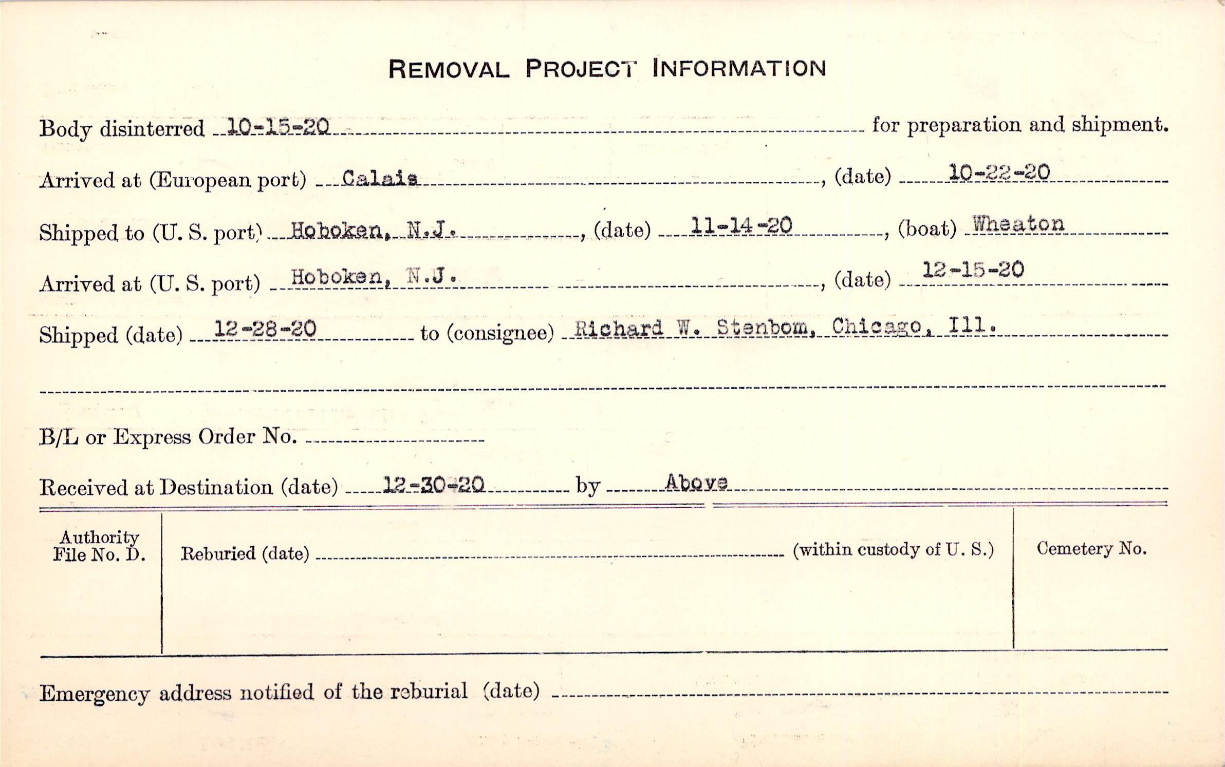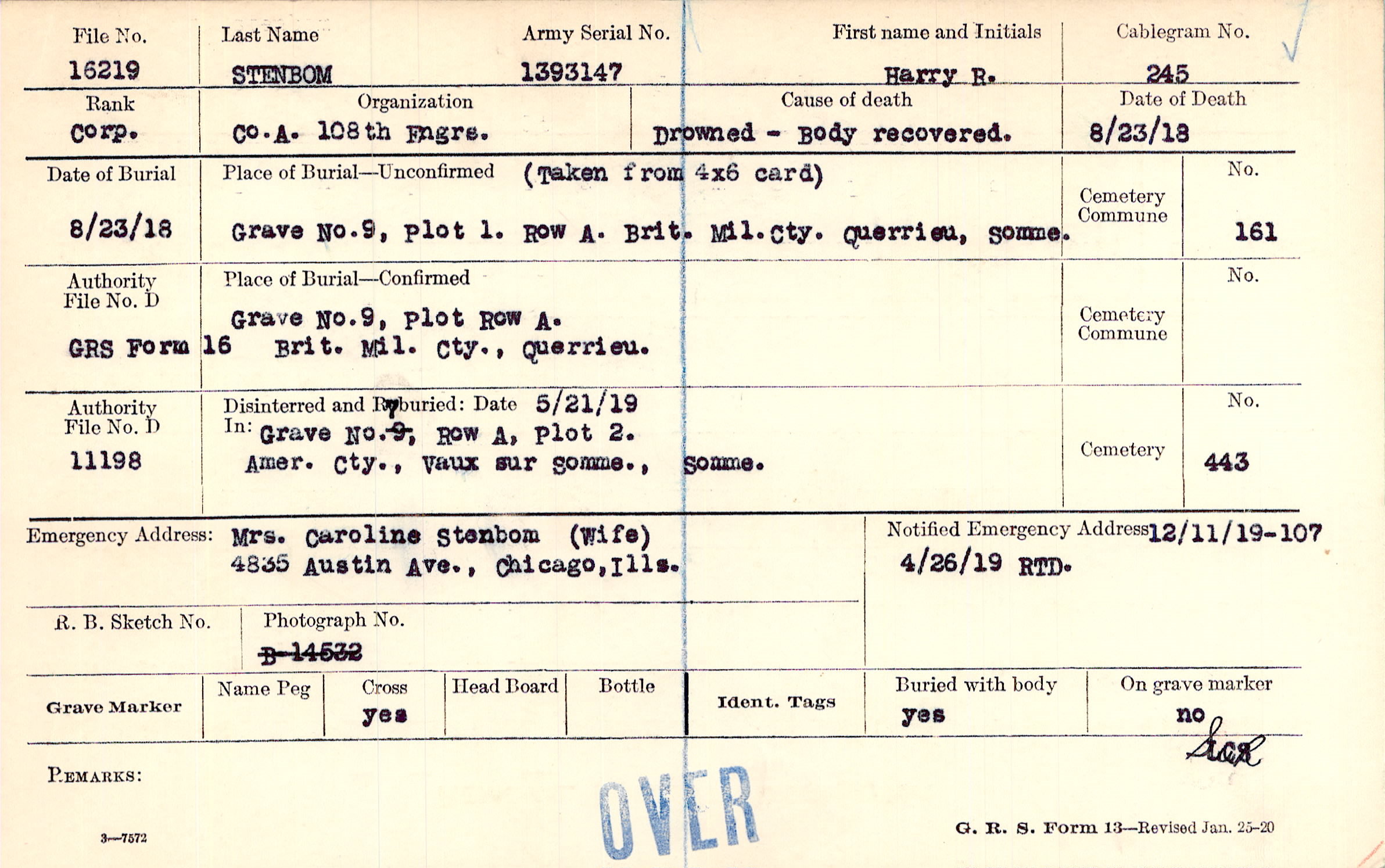 Mrs. Caroline Stenbom (Wife), 4835 Austin Ave., Chicago,Ills.