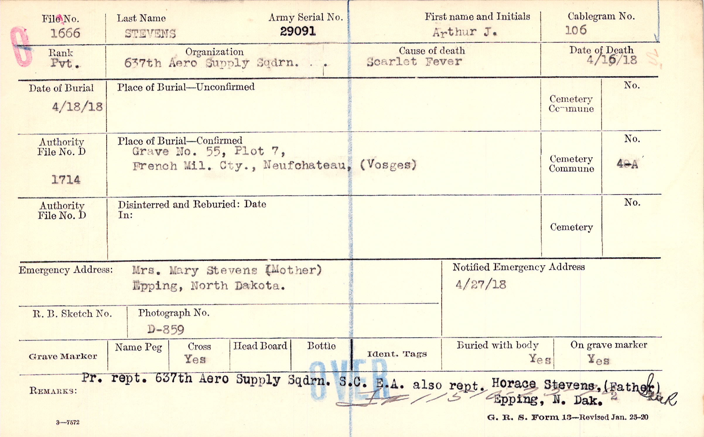 Grave 55, Plot 7, French Mil. Cty., Neufchateau, (Vosges)