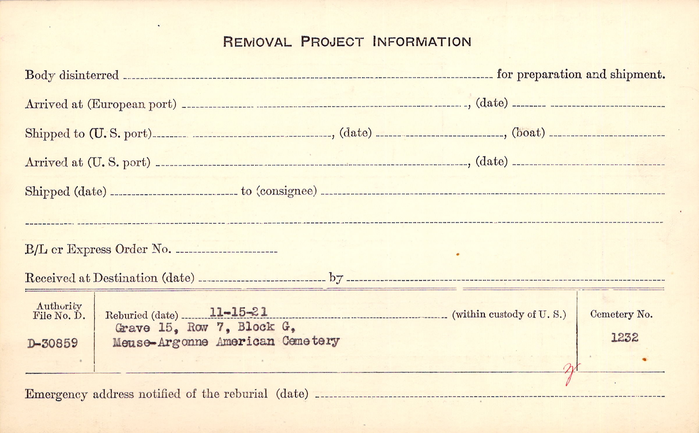 | Permanent Burial in Foreign Cemetery |