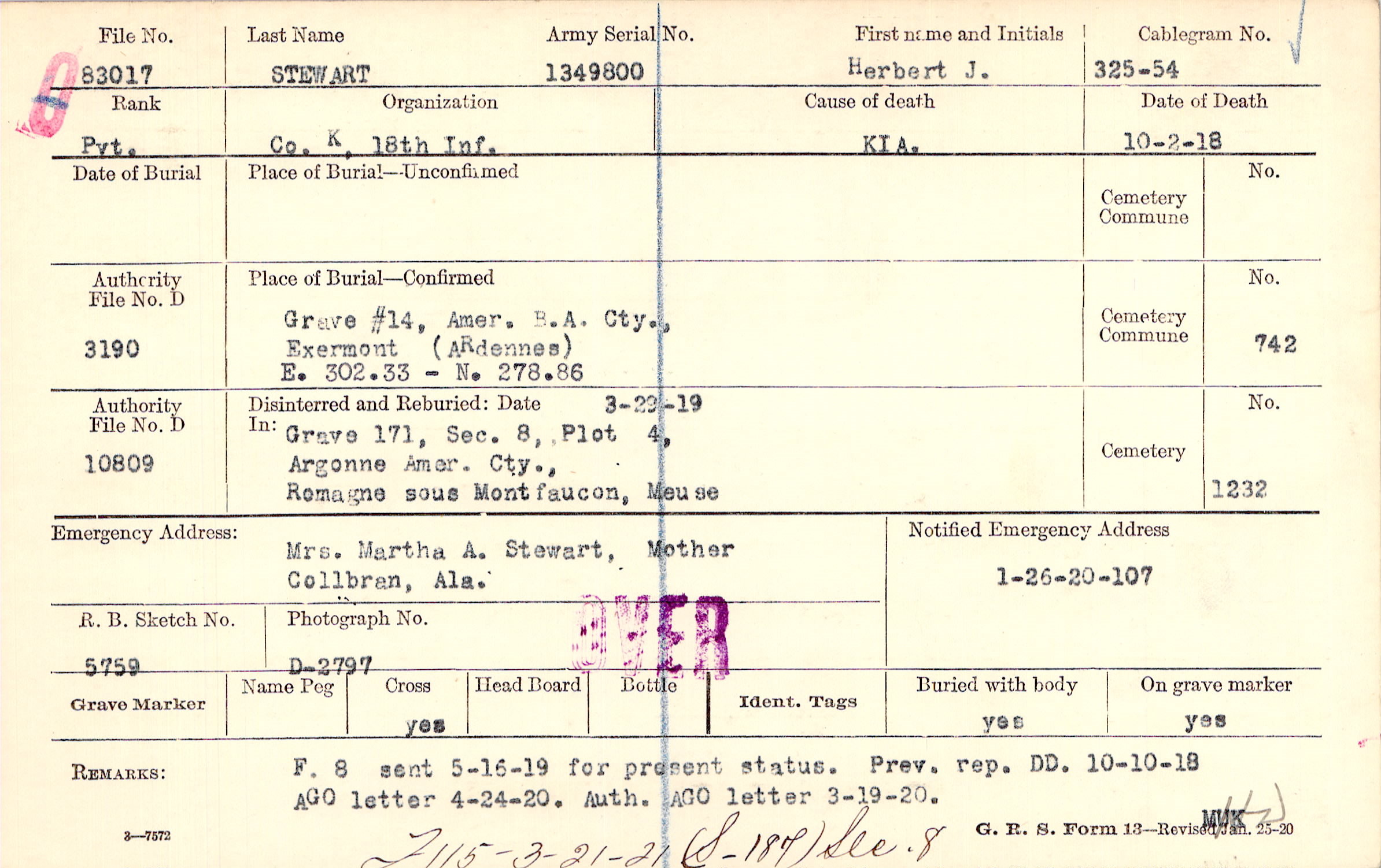 Grave 171, Section 8, Plot 4, Argonne American Cemetery, Romagne-sous-Montfaucon, Meuse