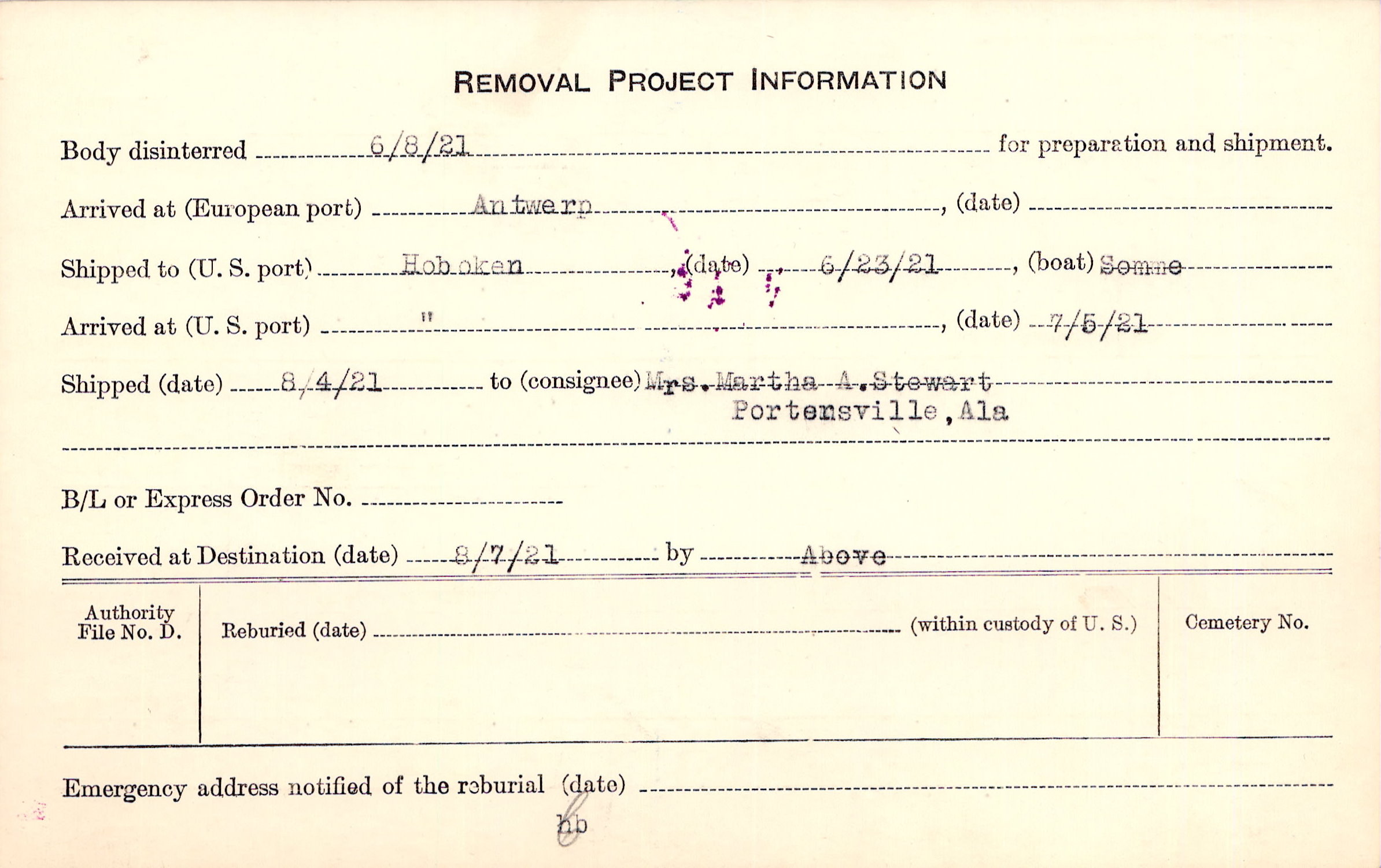 to Mrs. Martha A. Stewart, Portersville, Ala.