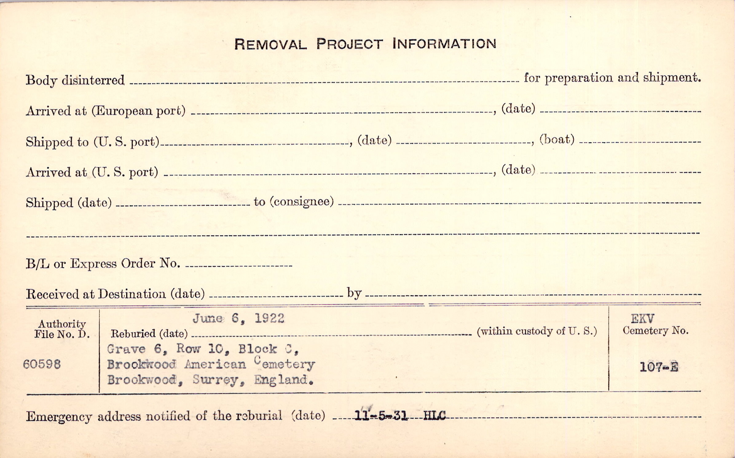 | Permanent Burial in Foreign Cemetery |