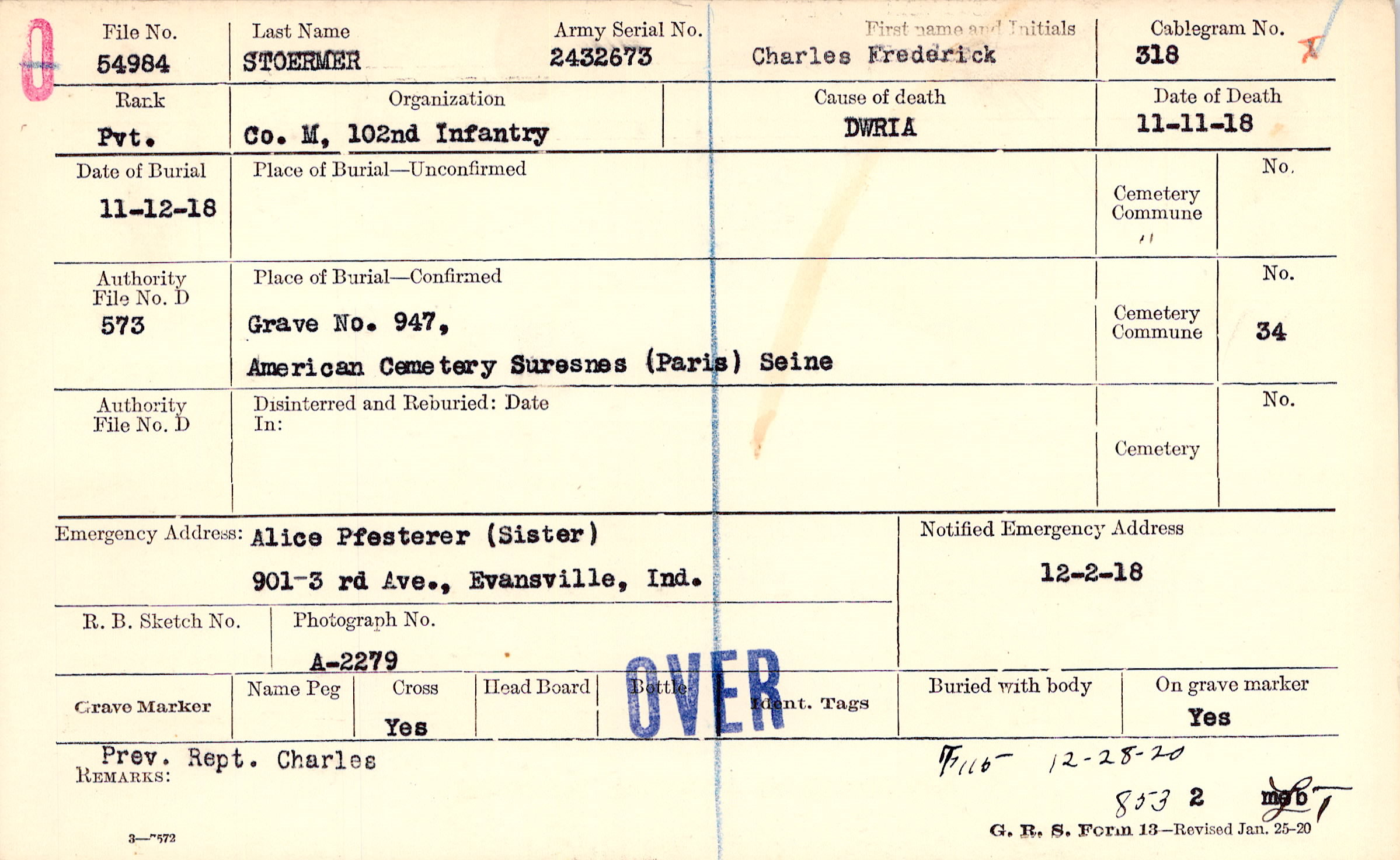 Grave 947, American Cemetery, Suresnes, Paris, Seine