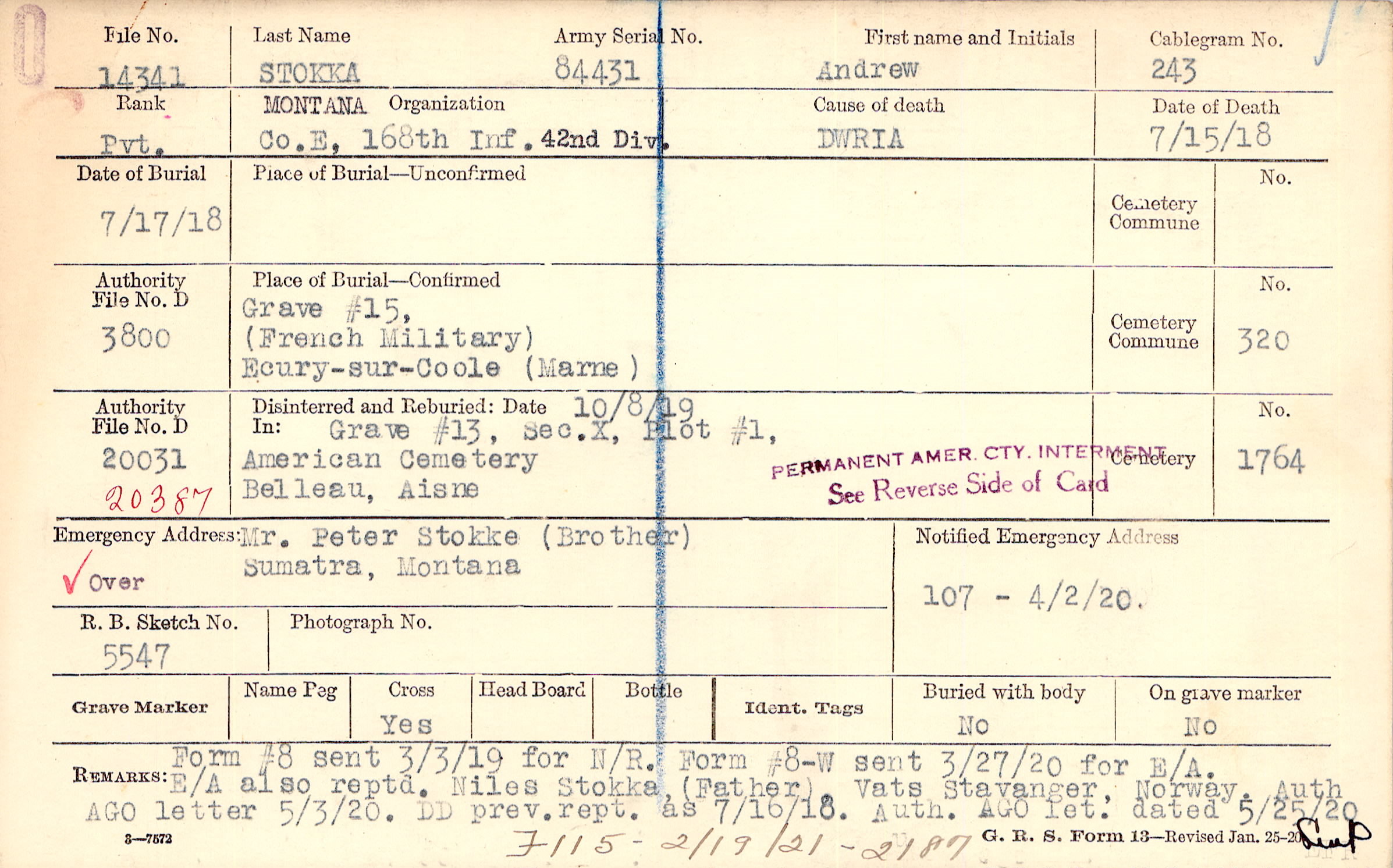 | Permanent Burial in Foreign Cemetery |