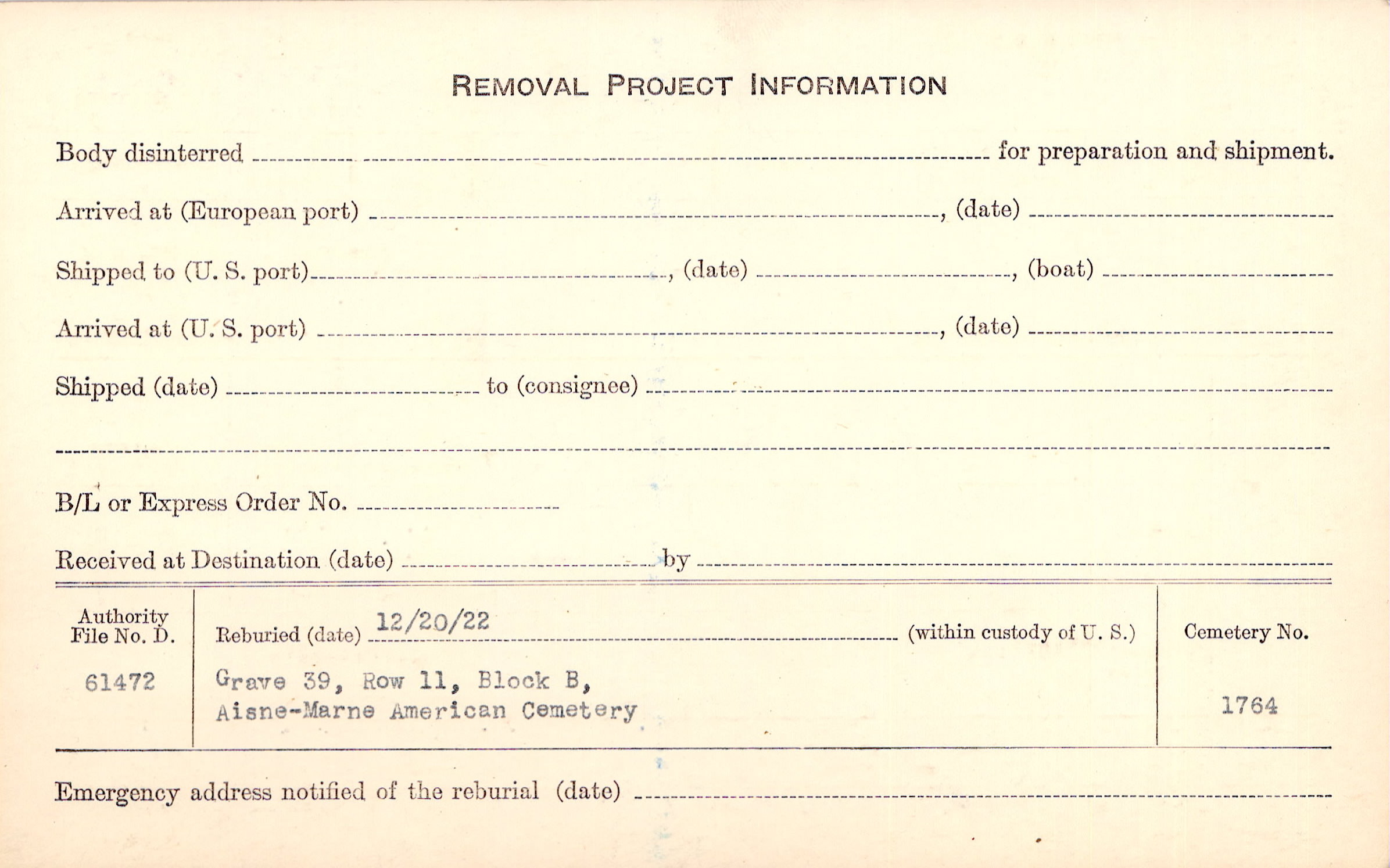 | Permanent Burial in Foreign Cemetery |