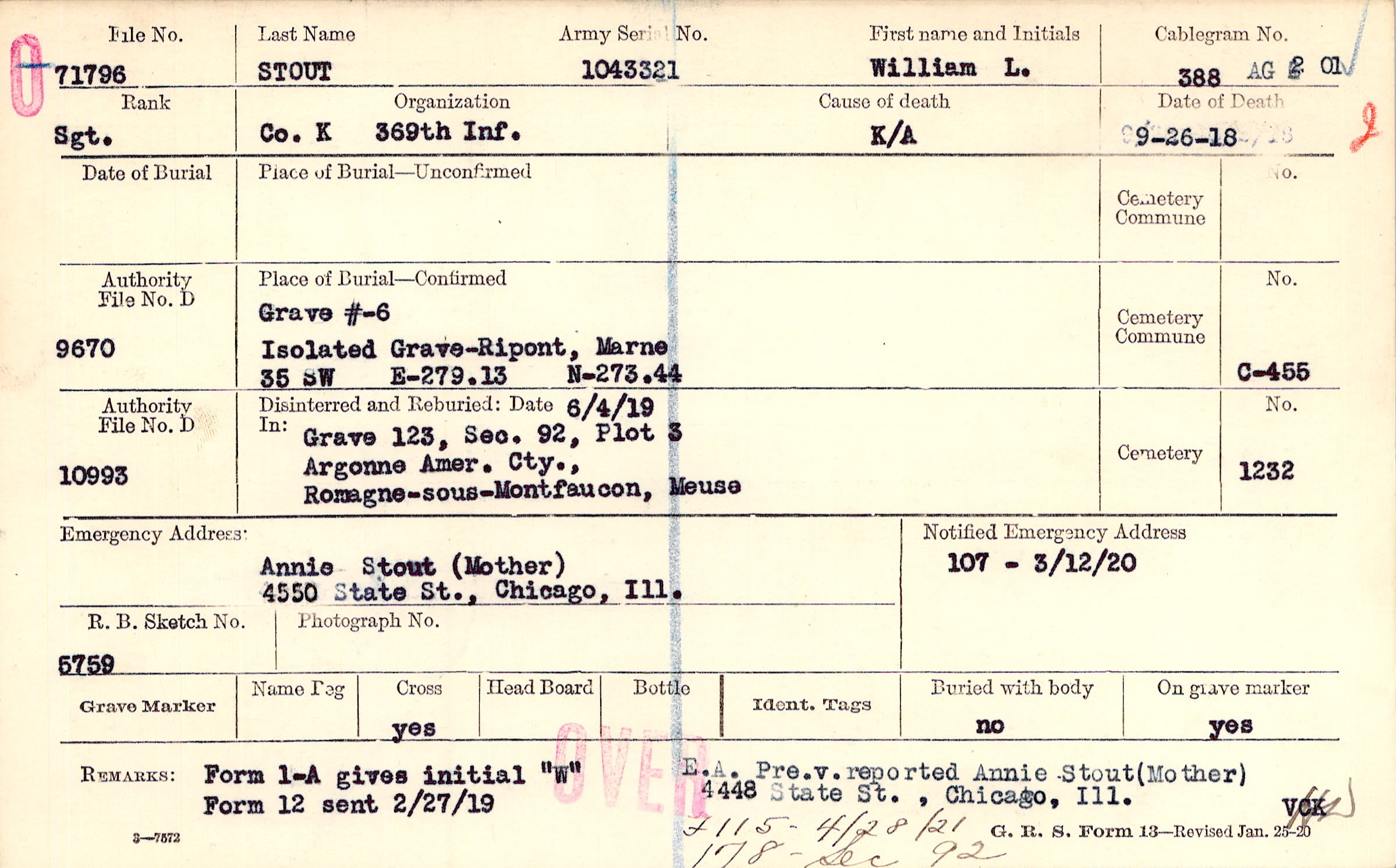 Annie Stout (Mother), 4550 State St., Chicago, Ill.