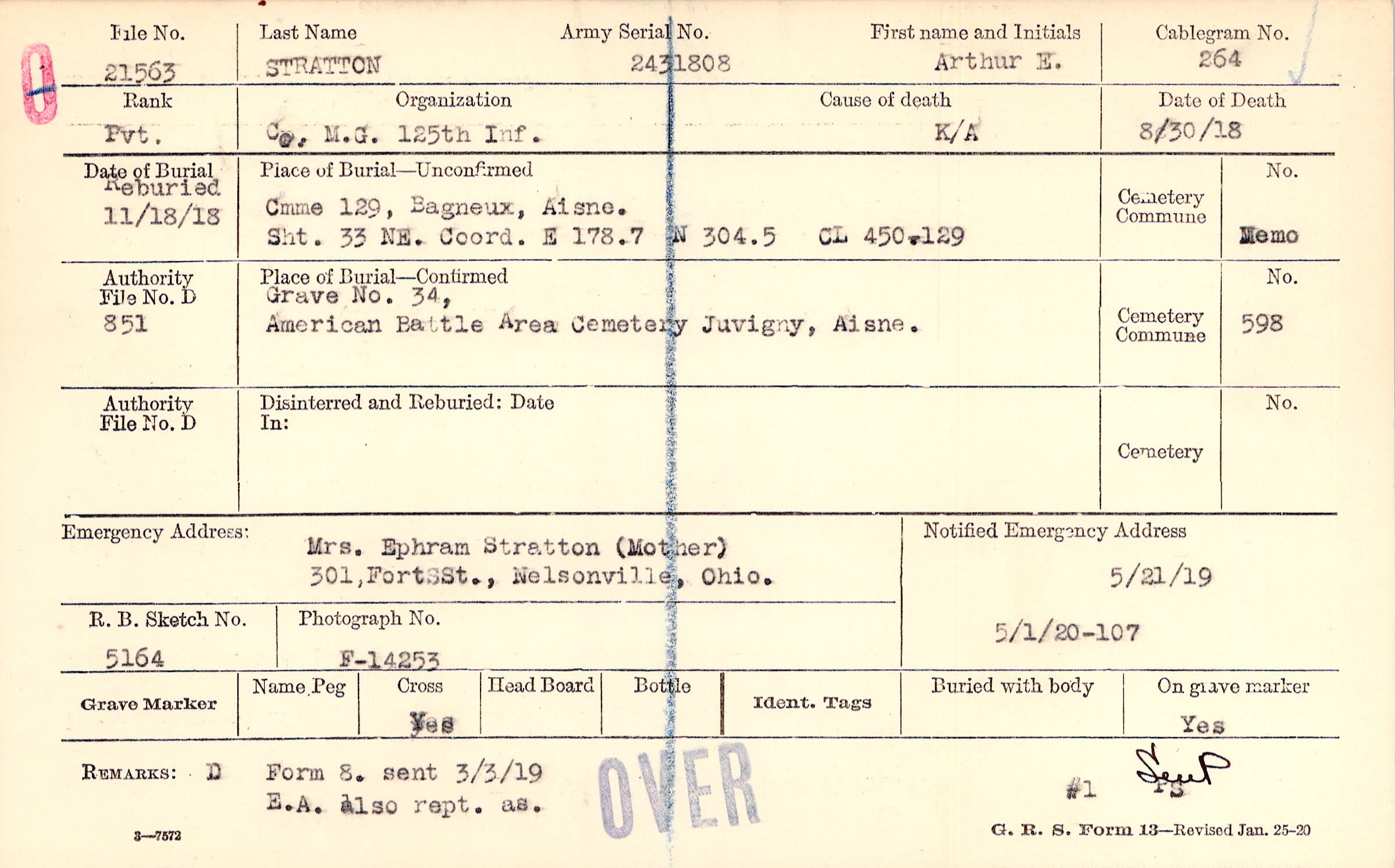 Grave 34, American Battle Area Cemetery Juvigny, Aisne