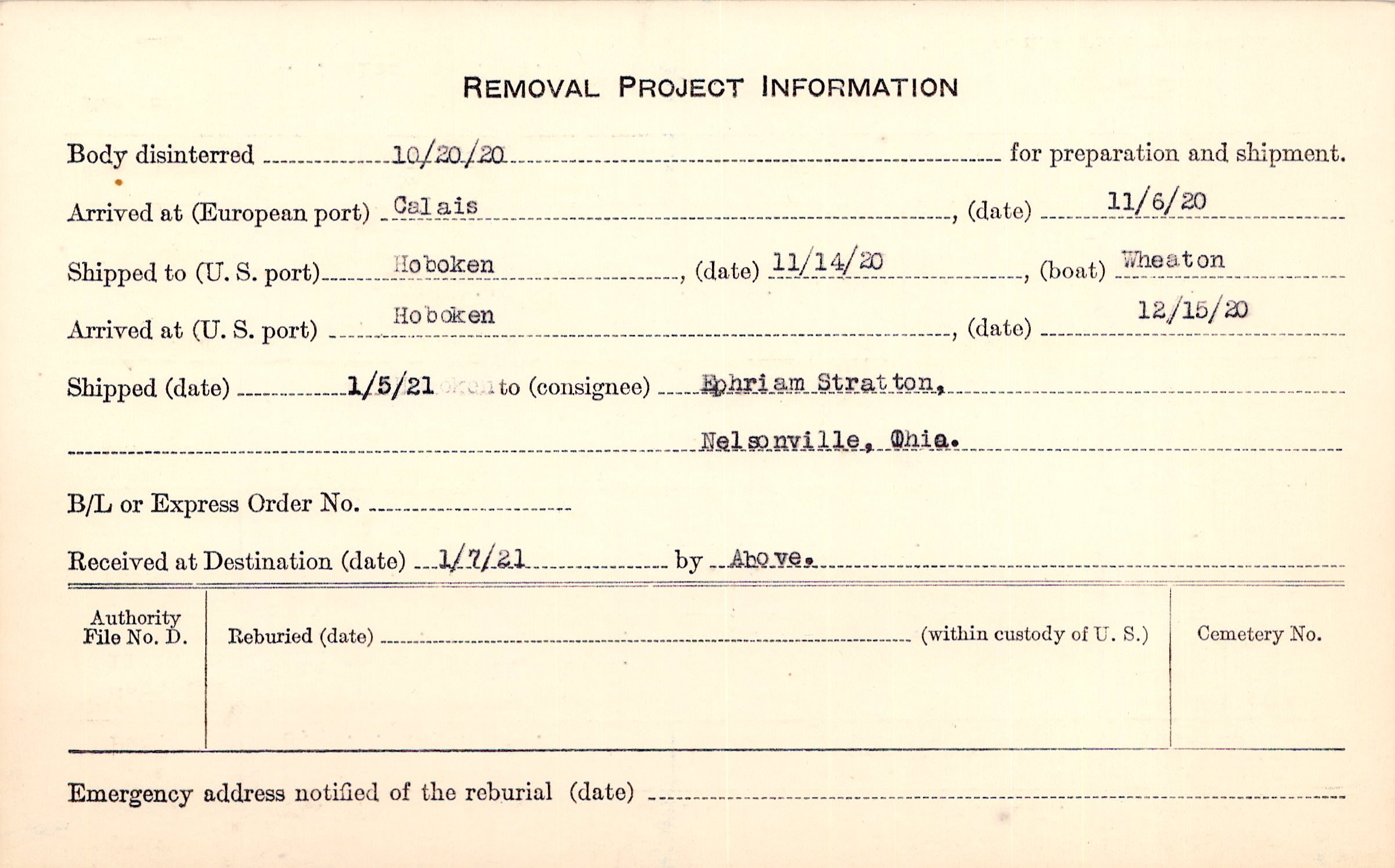 Mrs. Ephram Stratton (Mother), 301,Fort St., Nelsonville, Ohio