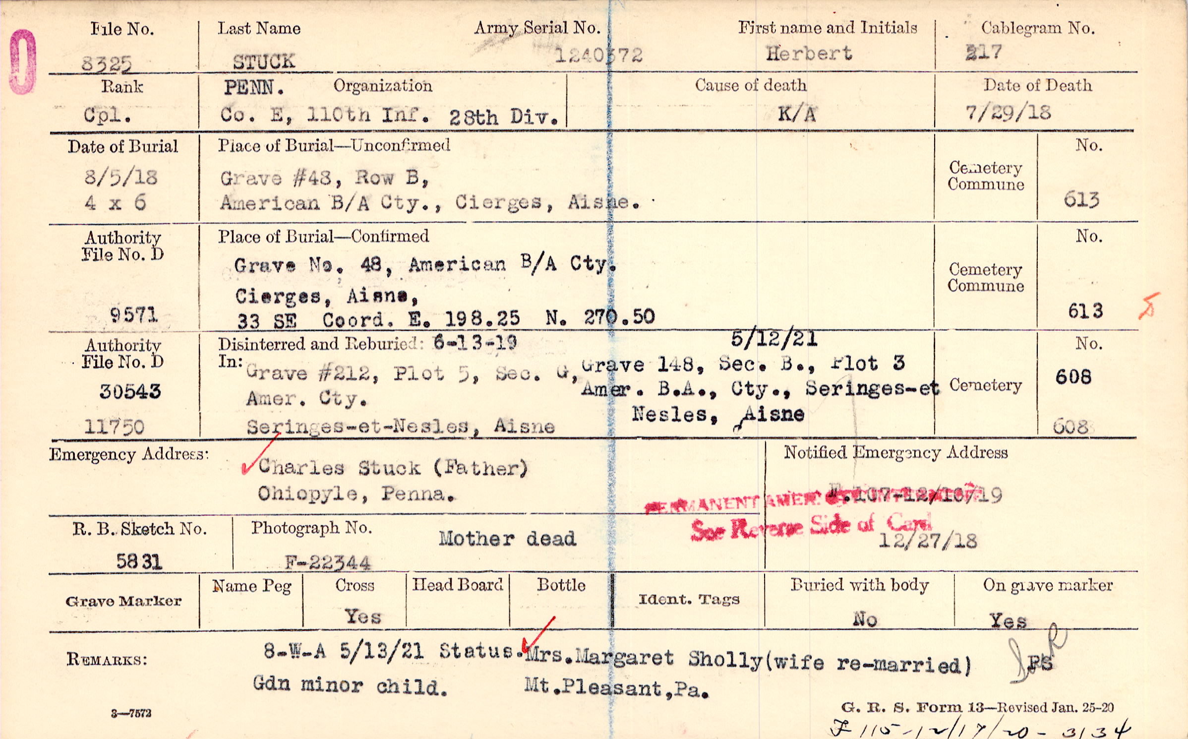 Grave 48, American B/A Cty., Cierges, Aisne, 33 SE