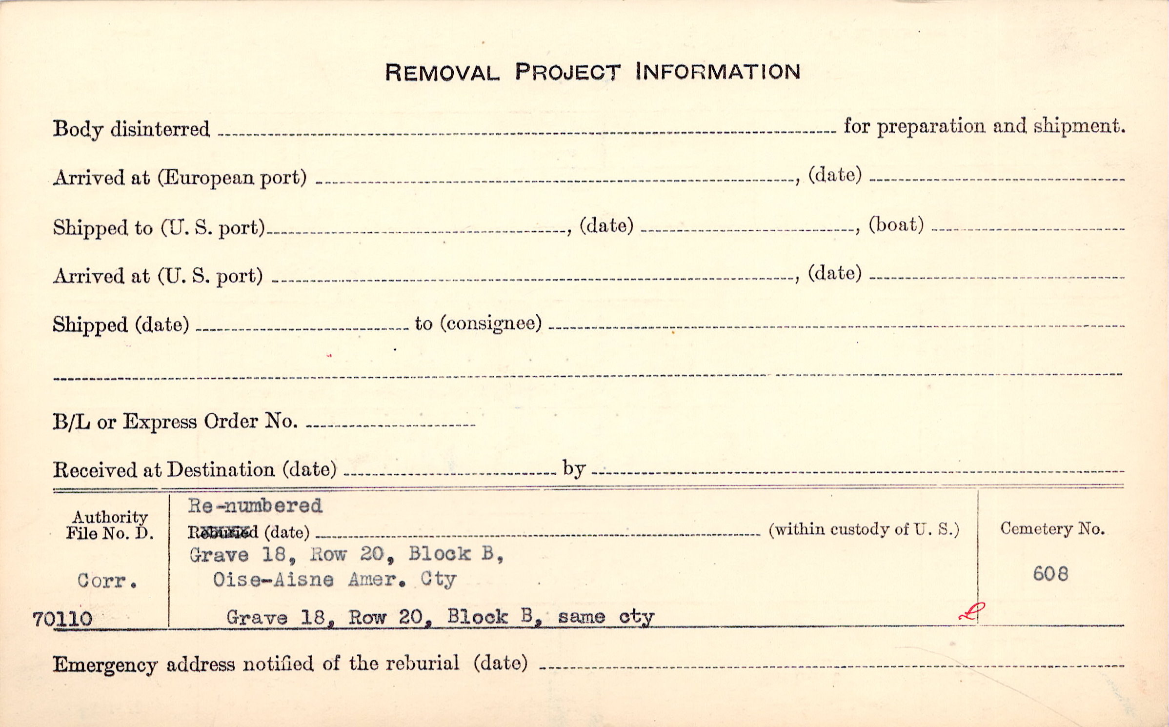 Prior Burial in Foreign Cemetery |