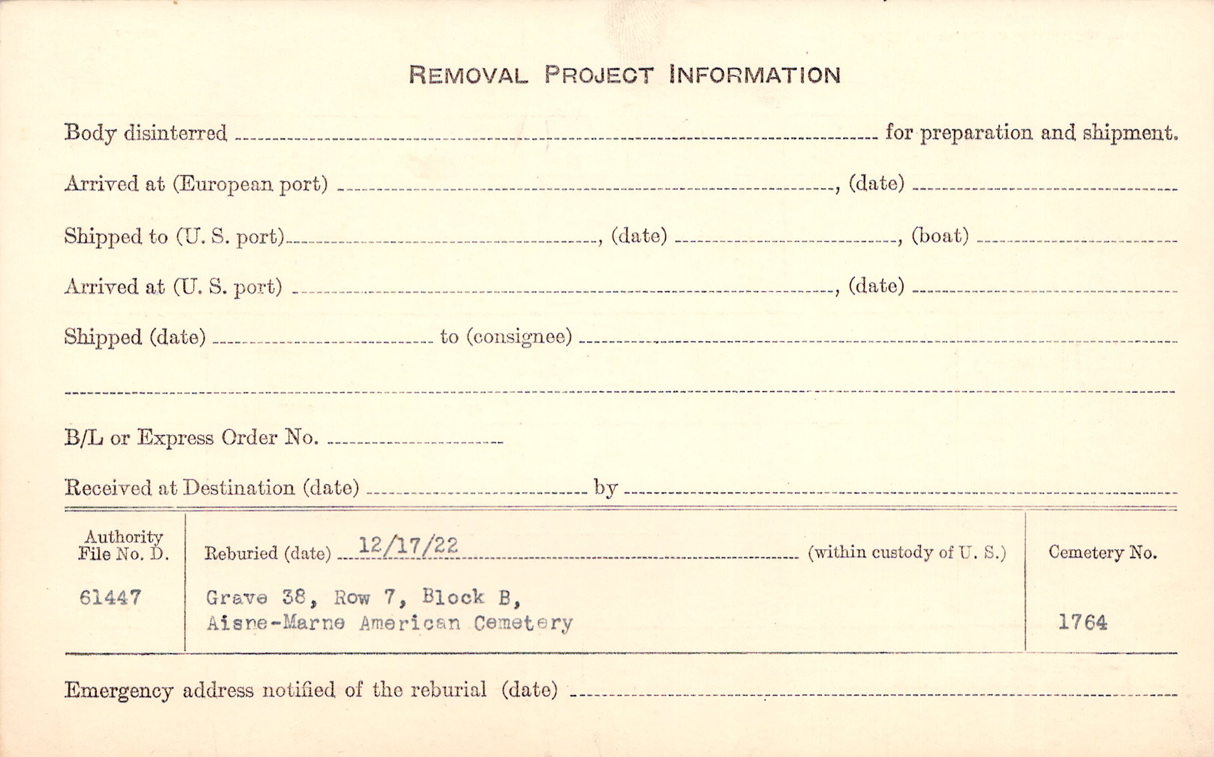 | Permanent Burial in Foreign Cemetery |