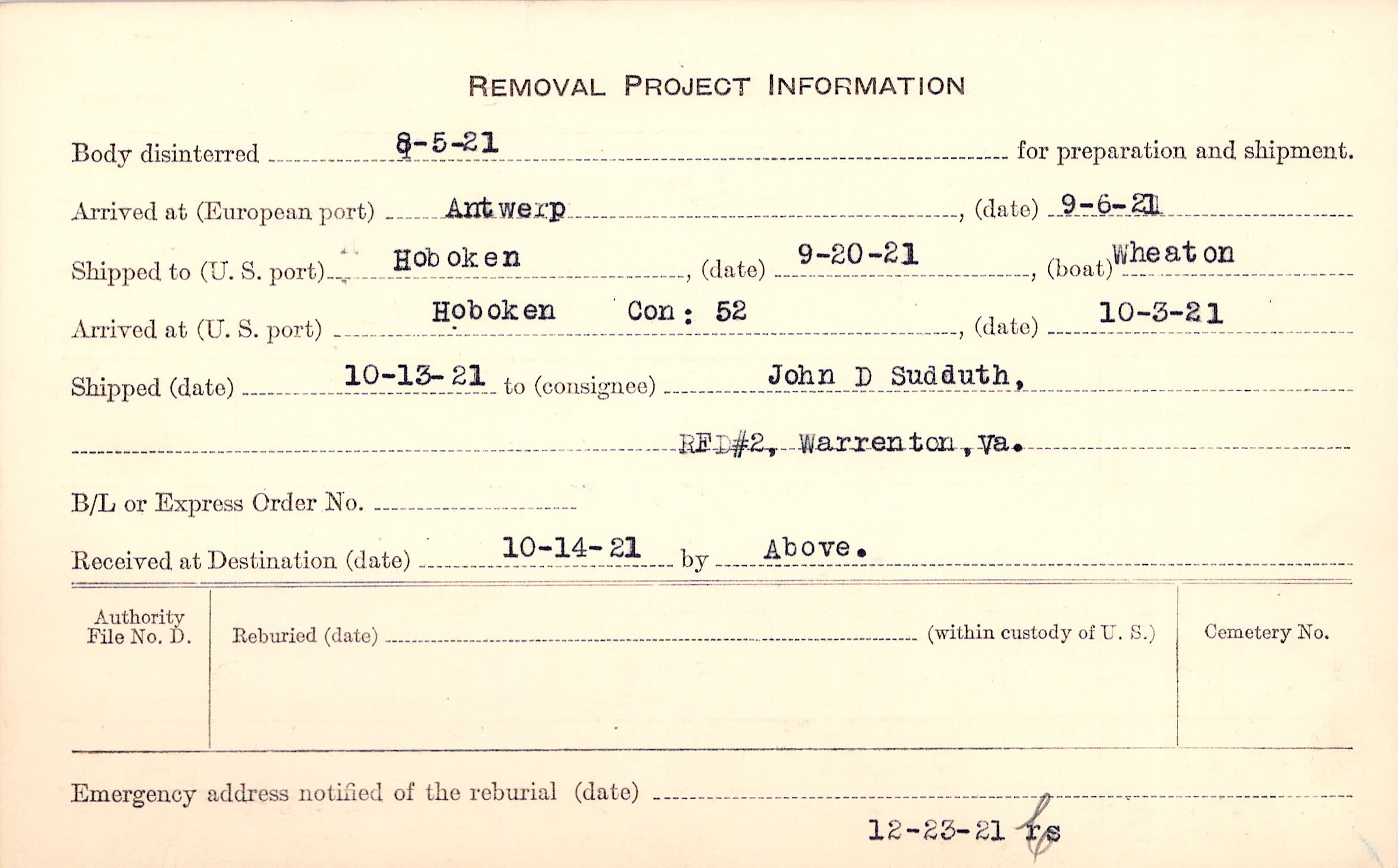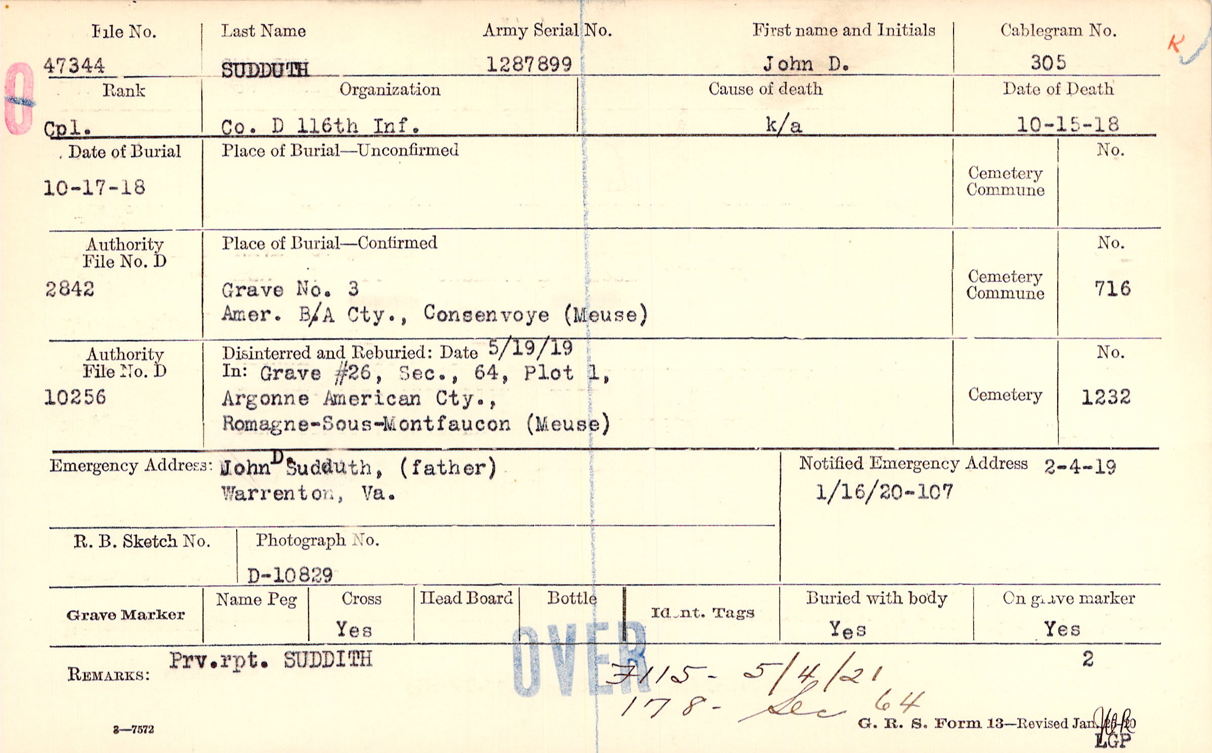 to John D Sudduth, RFD#2, Warrenton, Va.