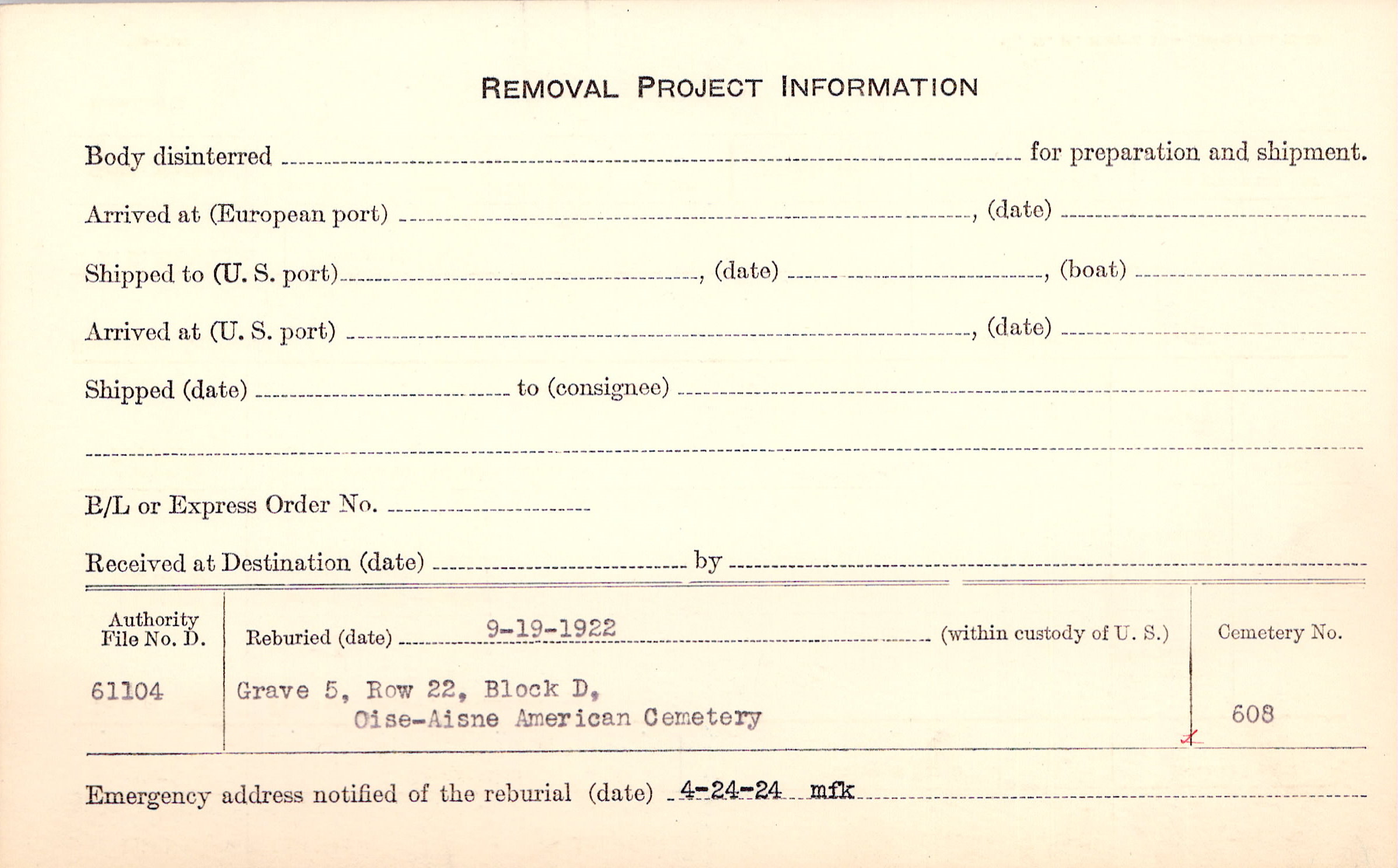 | Permanent Burial in Foreign Cemetery |