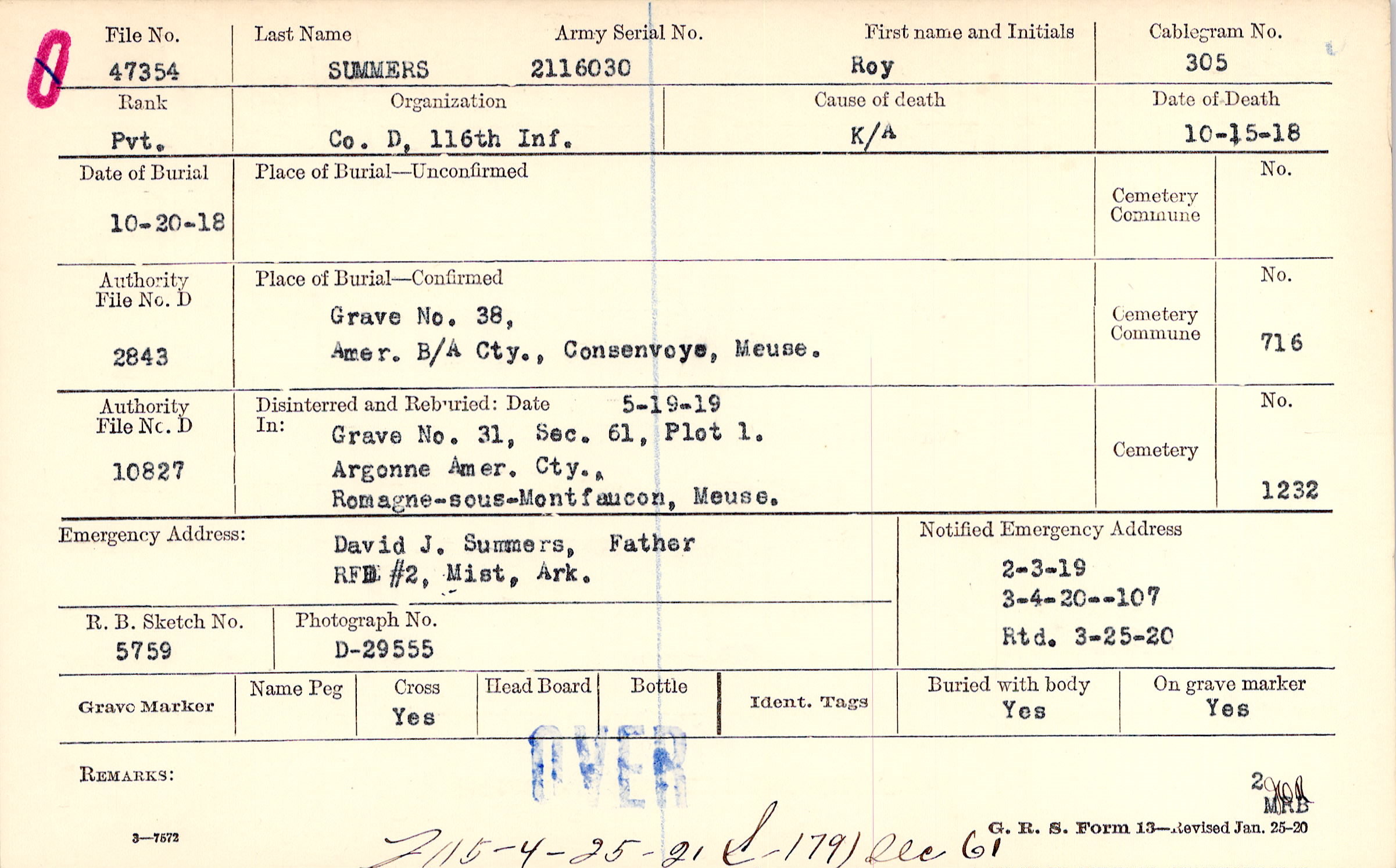 Grave 38, Amer. B/A Cty., Consenvoye, Meuse