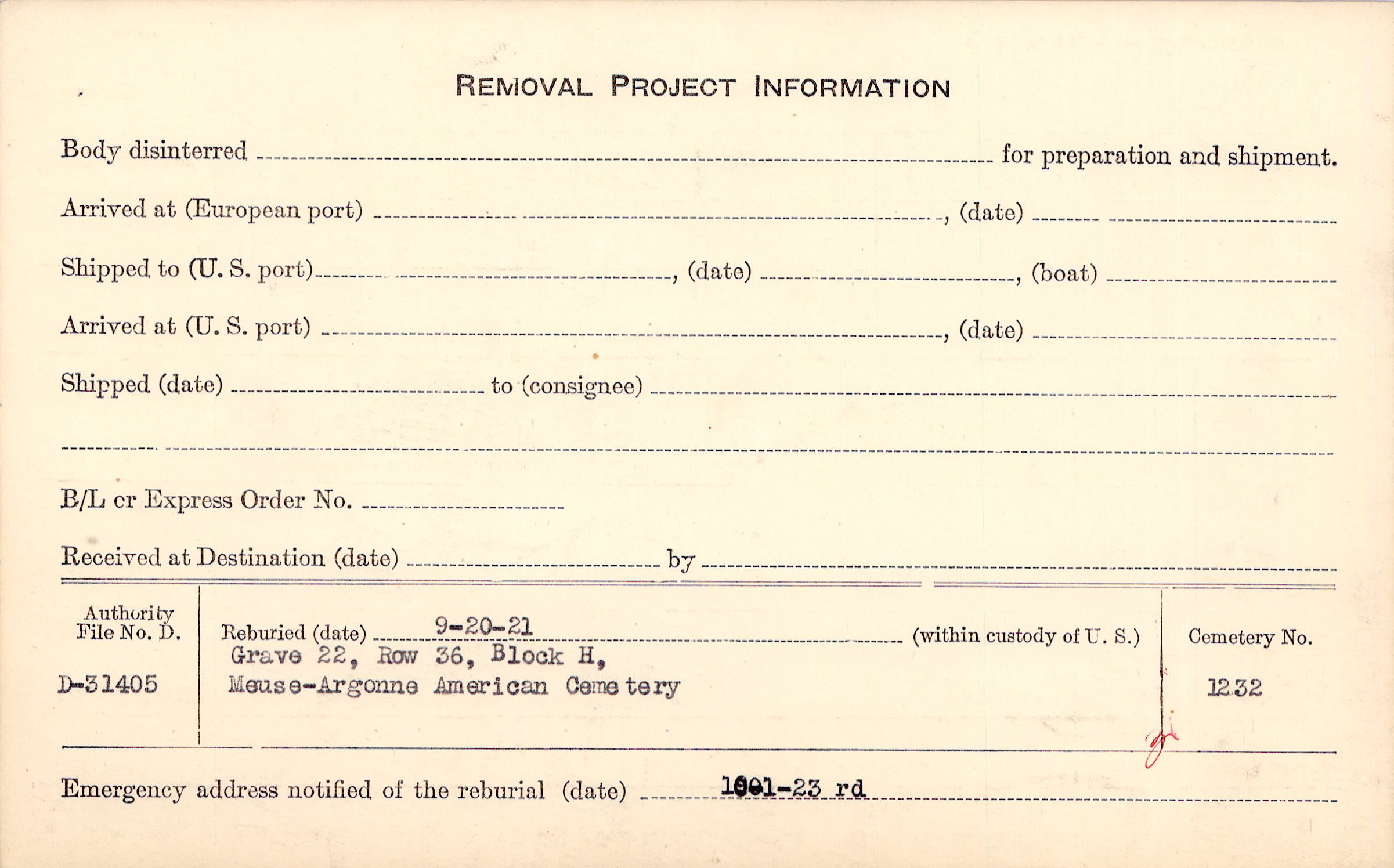 | Permanent Burial in Foreign Cemetery |
