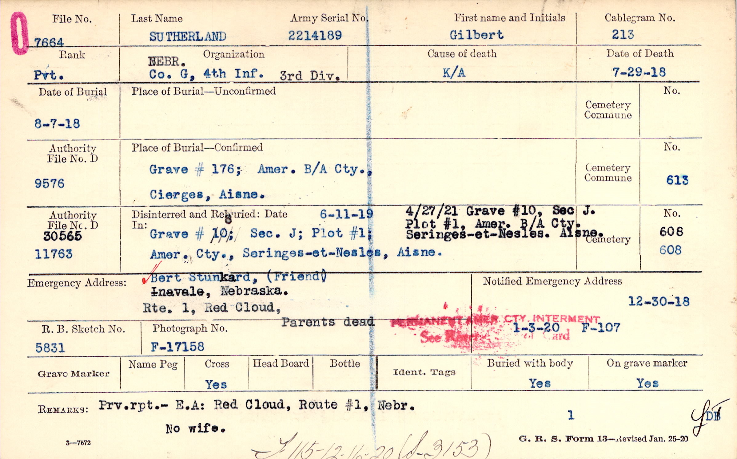 Prv. rpt.- E.A: Red Cloud, Route #1, Nebr. No wife., F115-12-16-20 (S_3153)