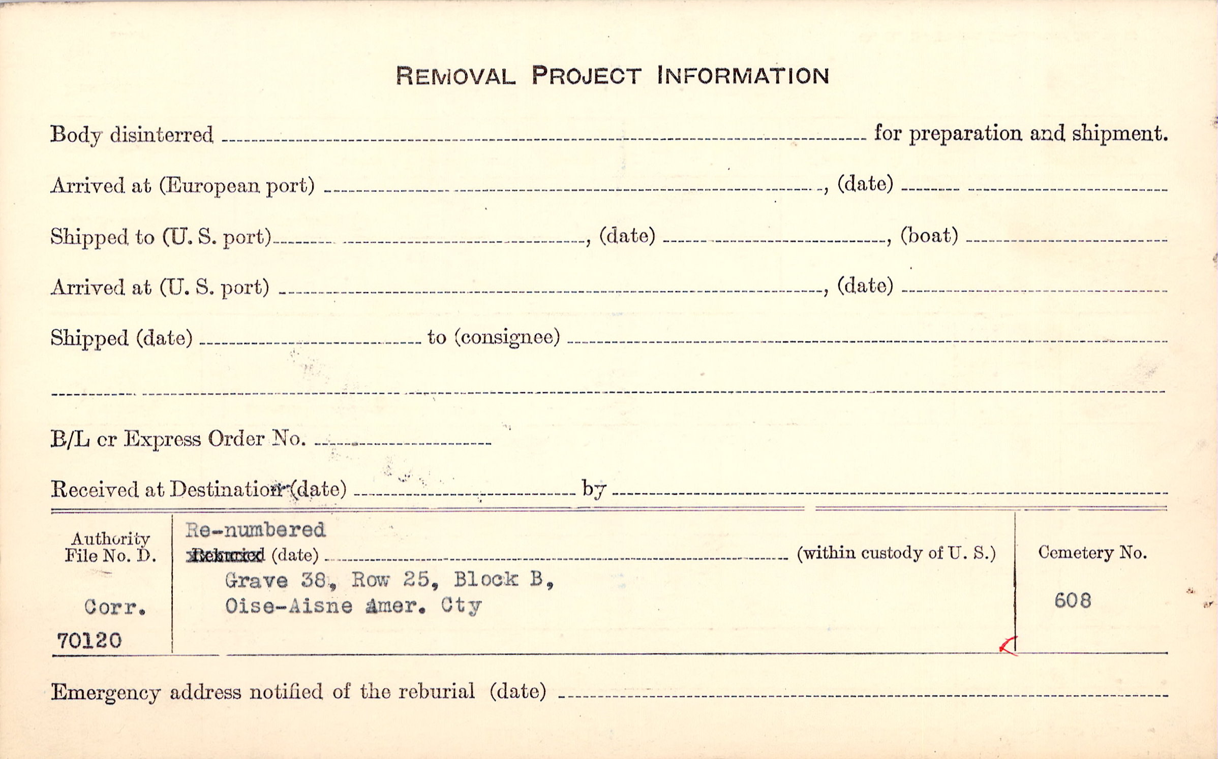| Permanent Burial in Foreign Cemetery |