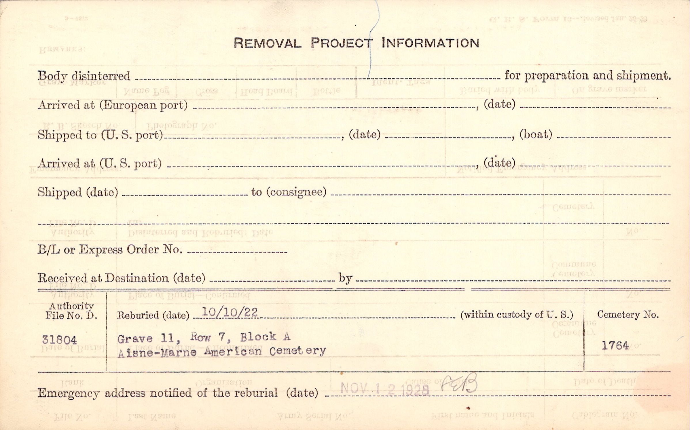 Grave 77, Section U, Plot 2, American Cemetery, Belleau, Aisne