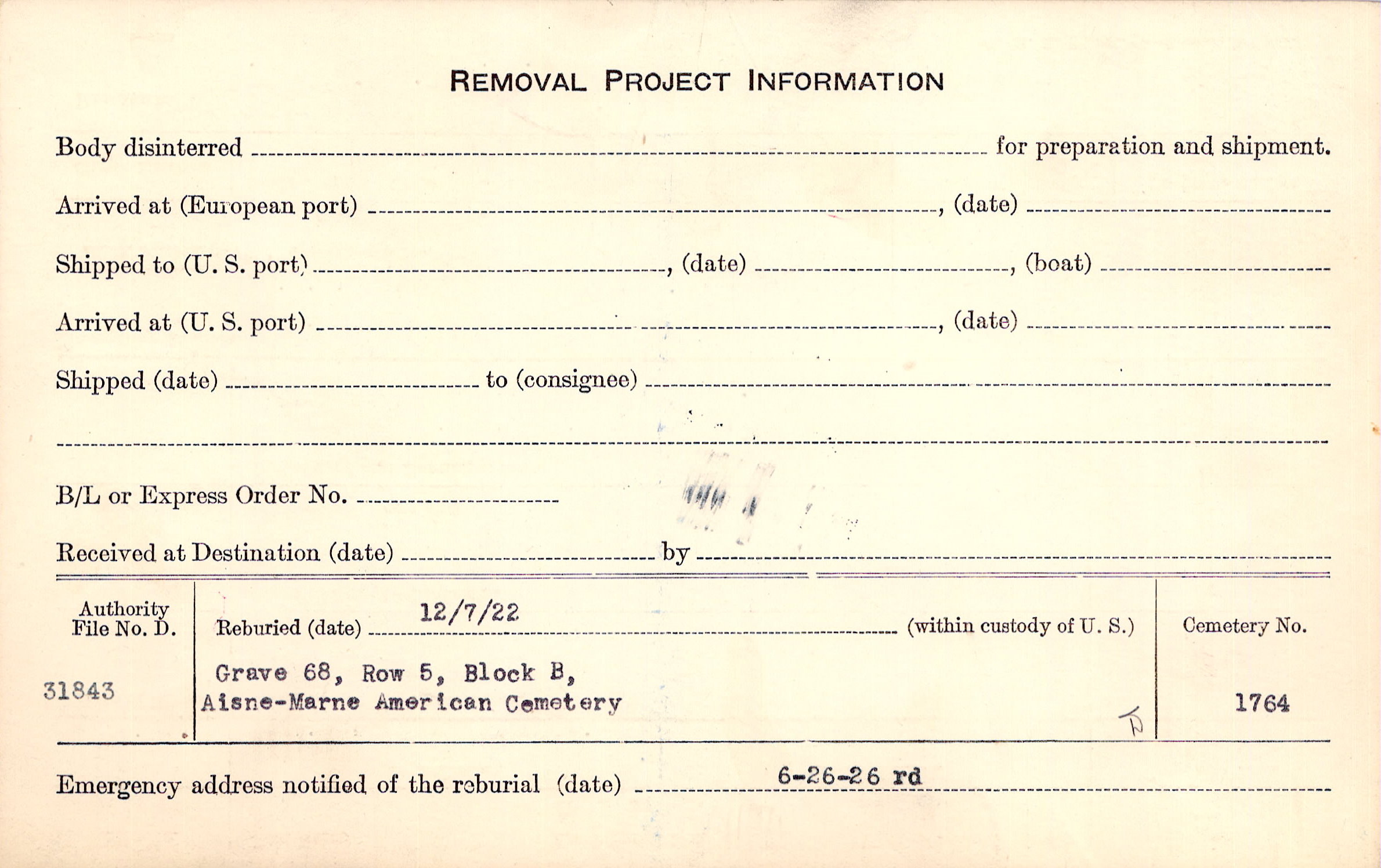 | Reburied (date): |