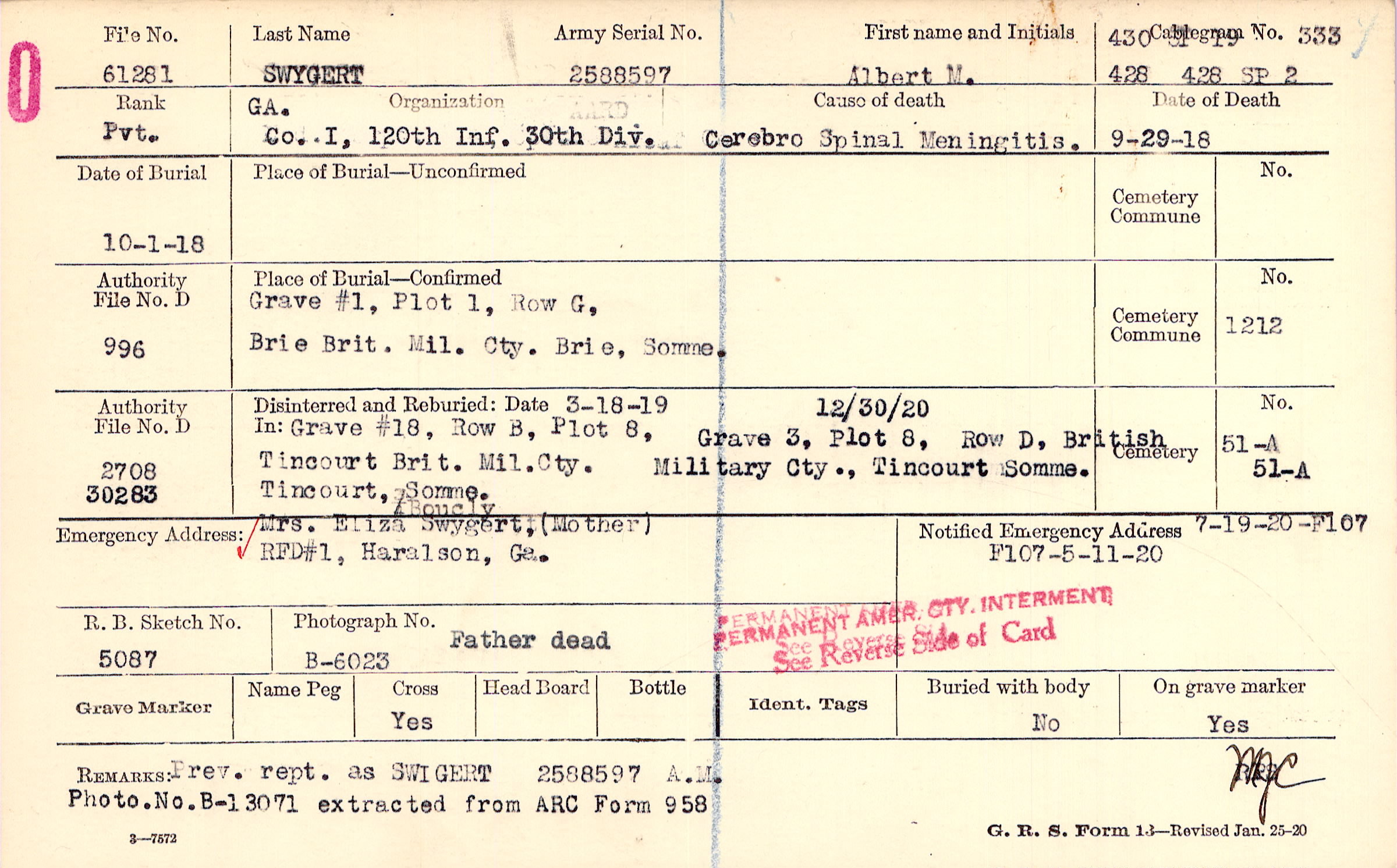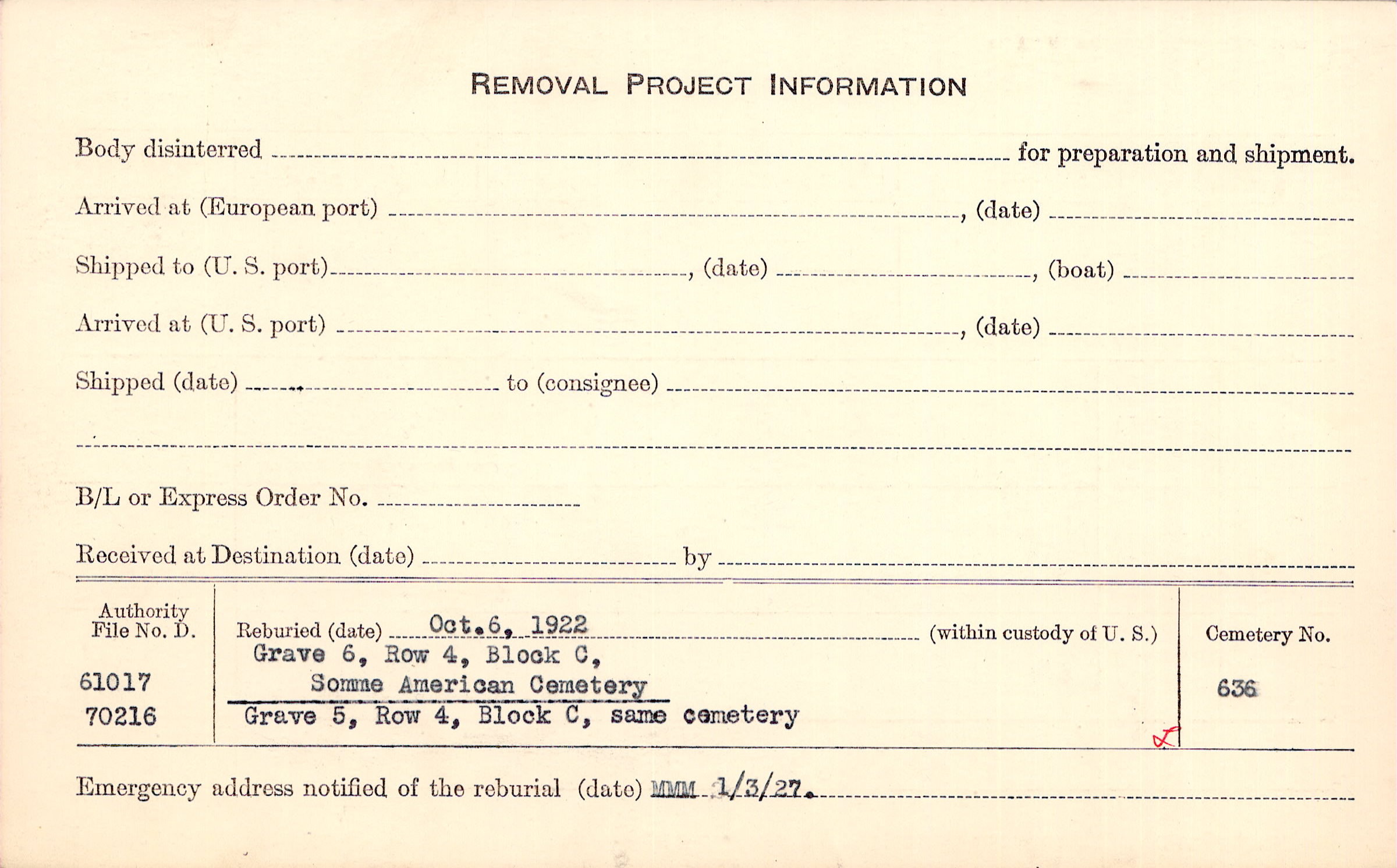 Prior Burial in Foreign Cemetery |