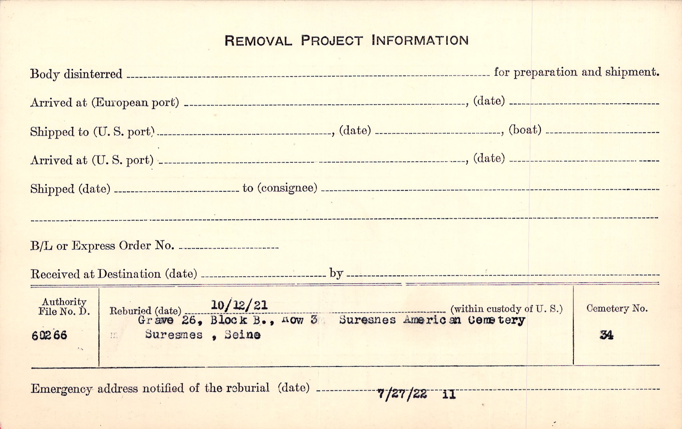 Grave 465, Row XVII, Municipal Cemetery, Treviso, Italy